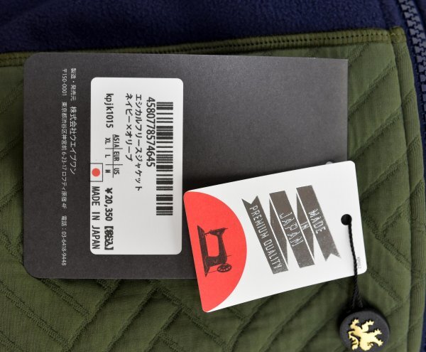 送料無料1★KAPELMUUR★カペルミュール エシカル フリース ジャケット size:XL ネイビー×オリーブ