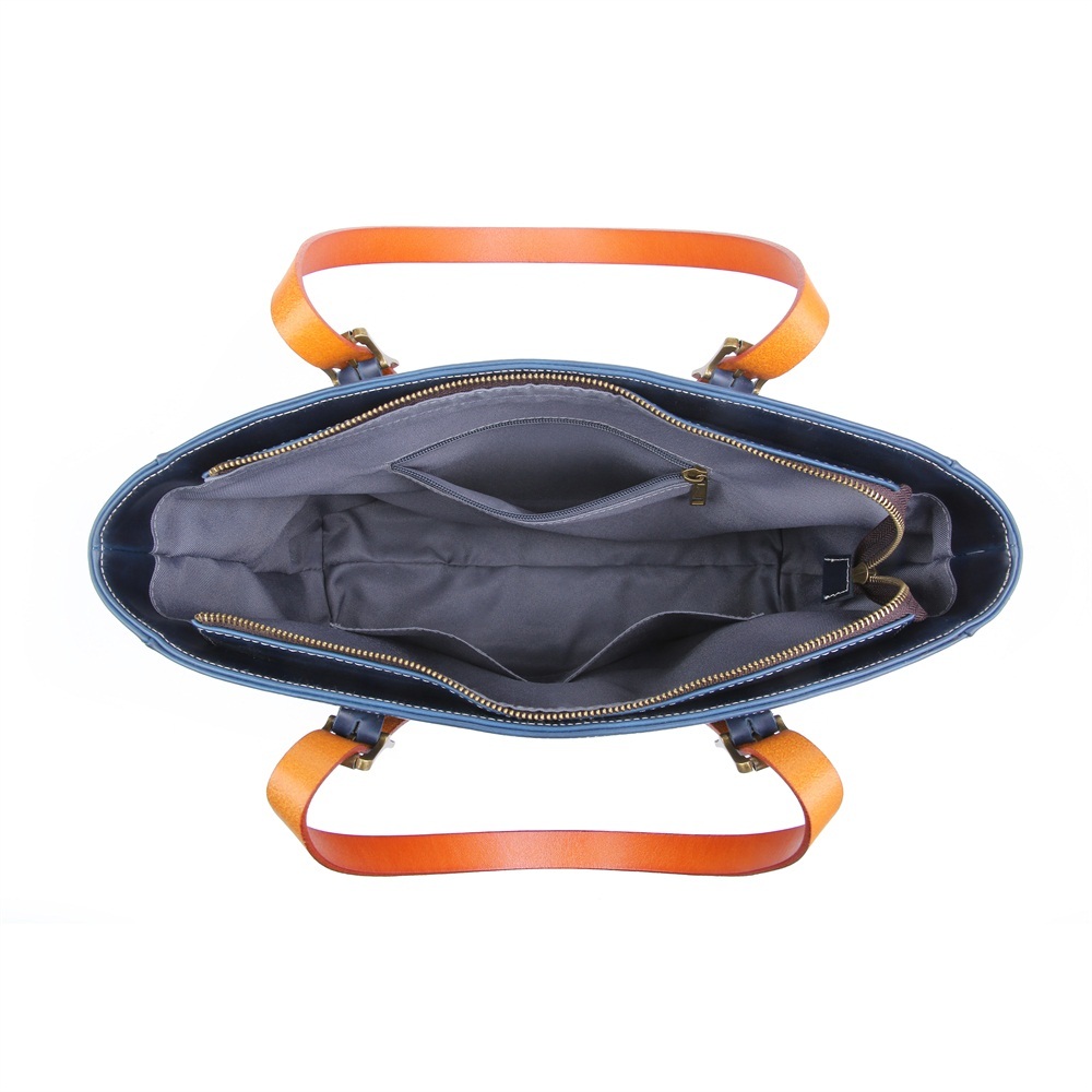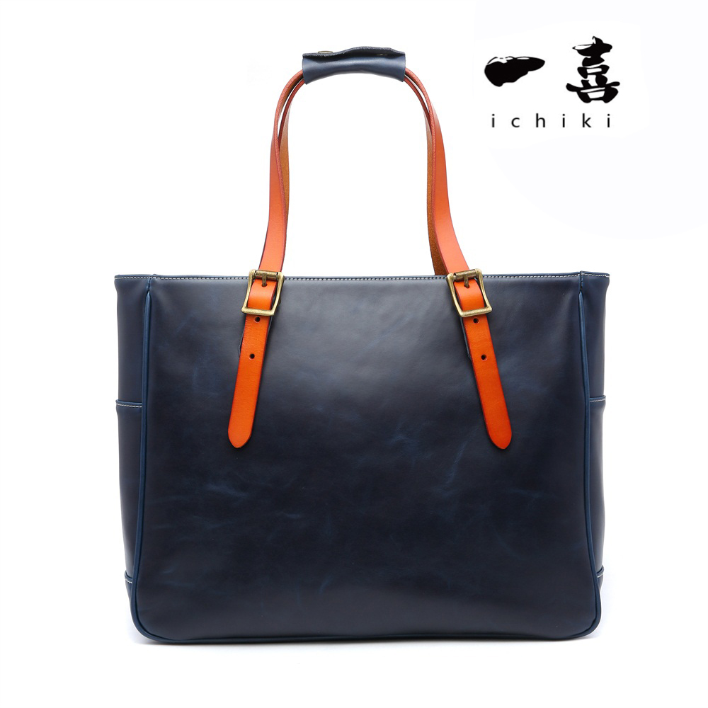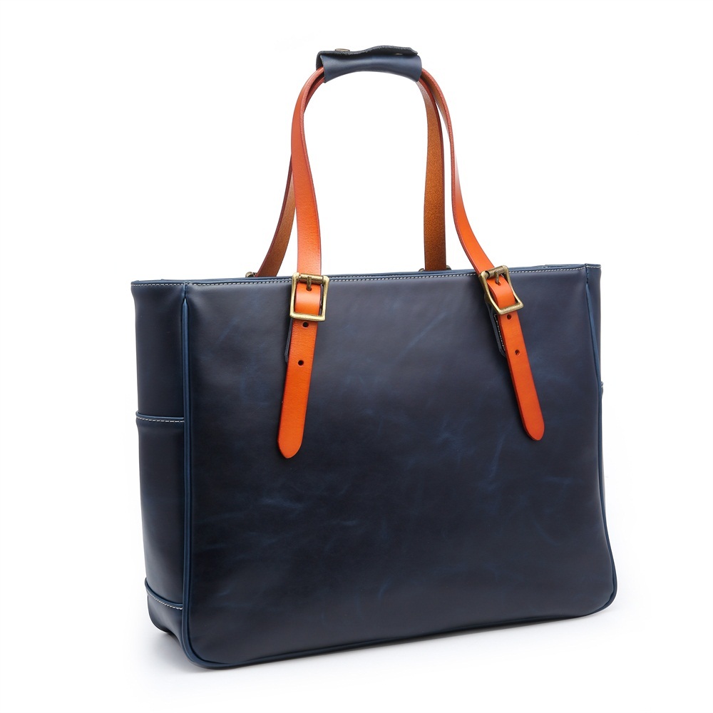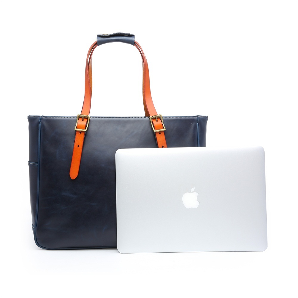 トートバッグ ハンドバッグ ビジネス お持ち手調節可 牛床革 WAY 大容量 男女兼用 ネイビーブルー D31