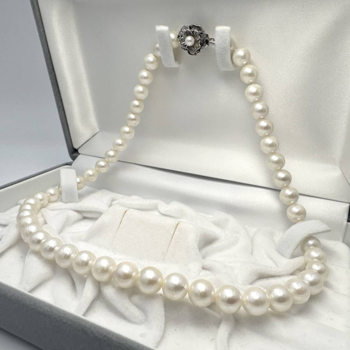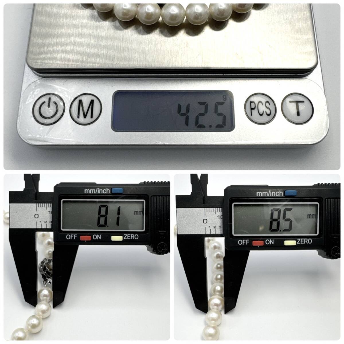 【最高級 テリ最強】 8.1-8.5mm アコヤ 本真珠ネックレス 42.5cm SILVER刻印 42.5g パール クリーム系 あこや ジュエリー 宝石 W15