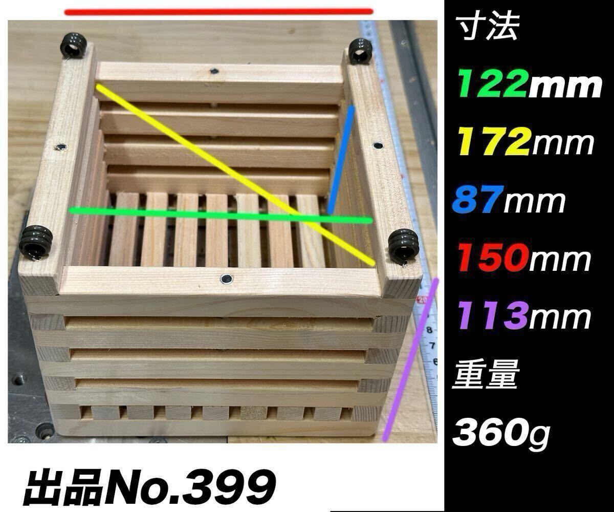 使用している木の種類はヒノキです。壁側は14mm×14mm、床は14mm×7または12または14mmの角材を使用しています。