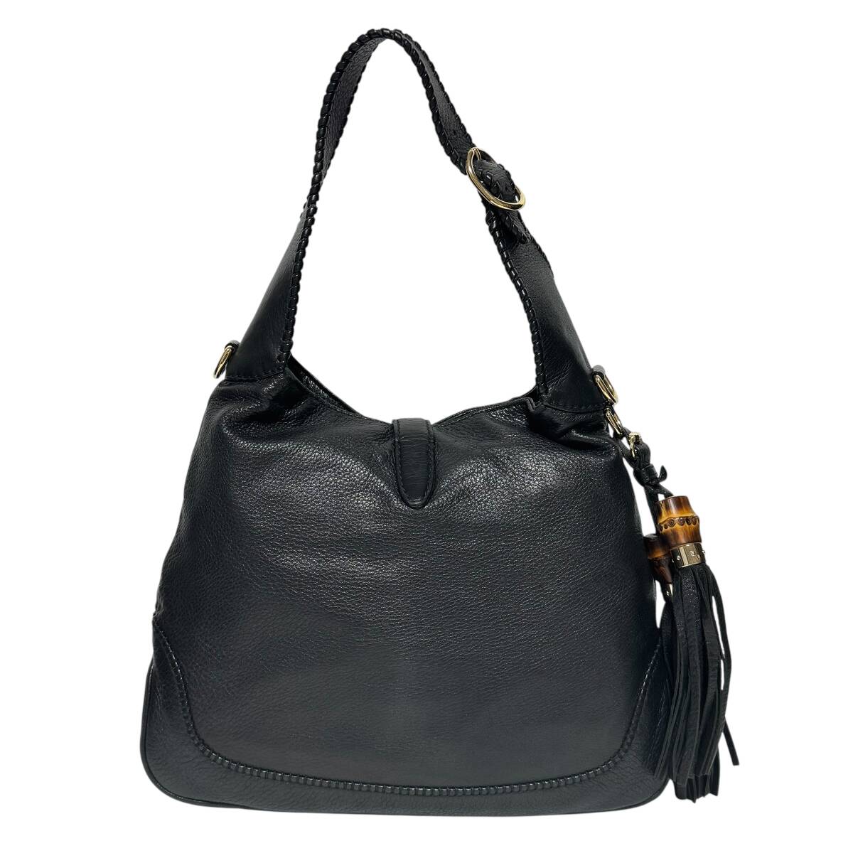 The iconic GUCCI Jackie Hobo Bag is a timeless piece that blends Italian craftsmanship with contemporary elegance. Made from high-quality grained leather, this bag showcases a relaxed hobo silhouette that effortlessly complements both casual and sophisticated looks. The signature piston clasp and bamboo and leather tassel detail offer a touch of vintage charm and instantly recognizable Gucci heritage.