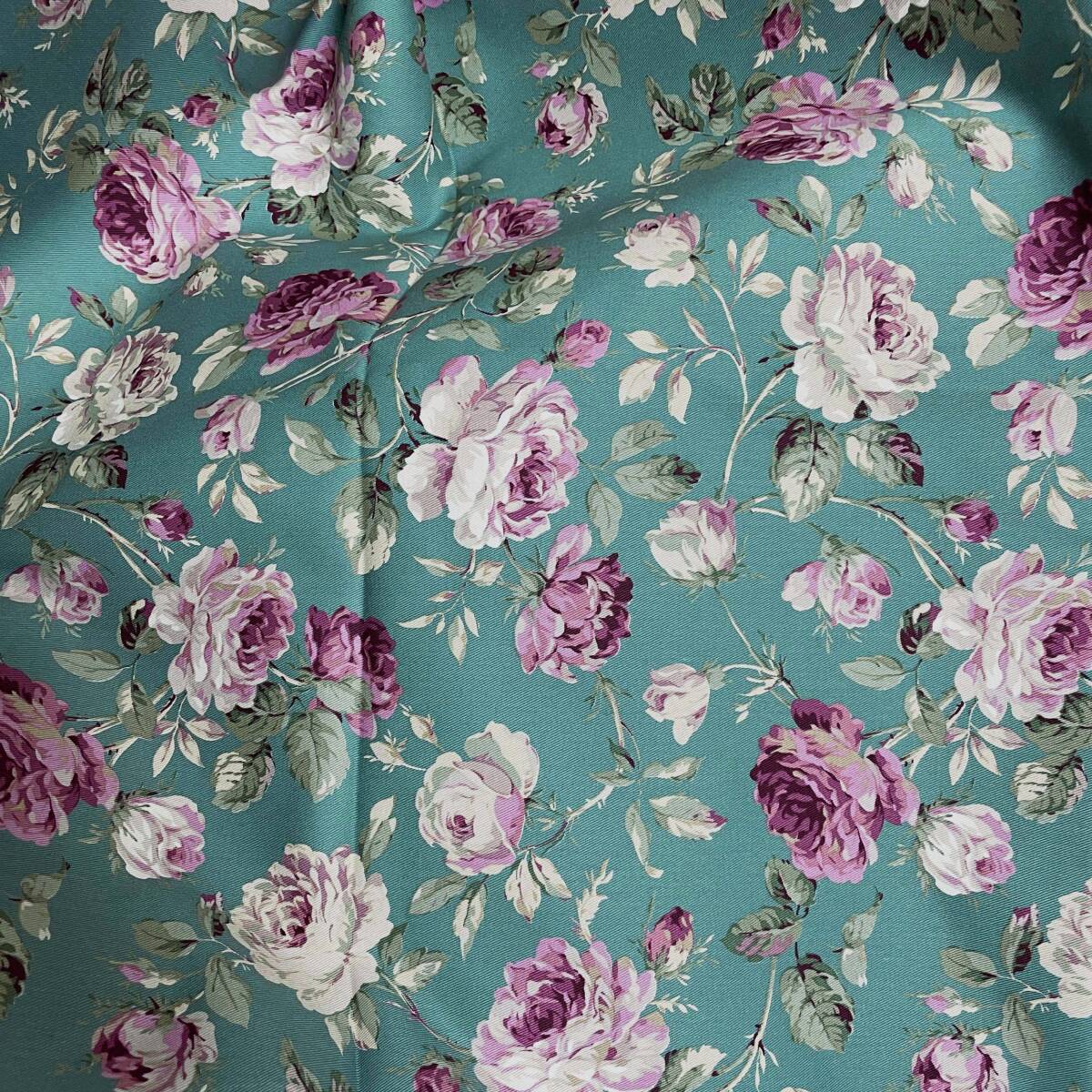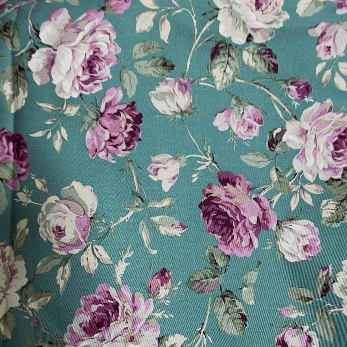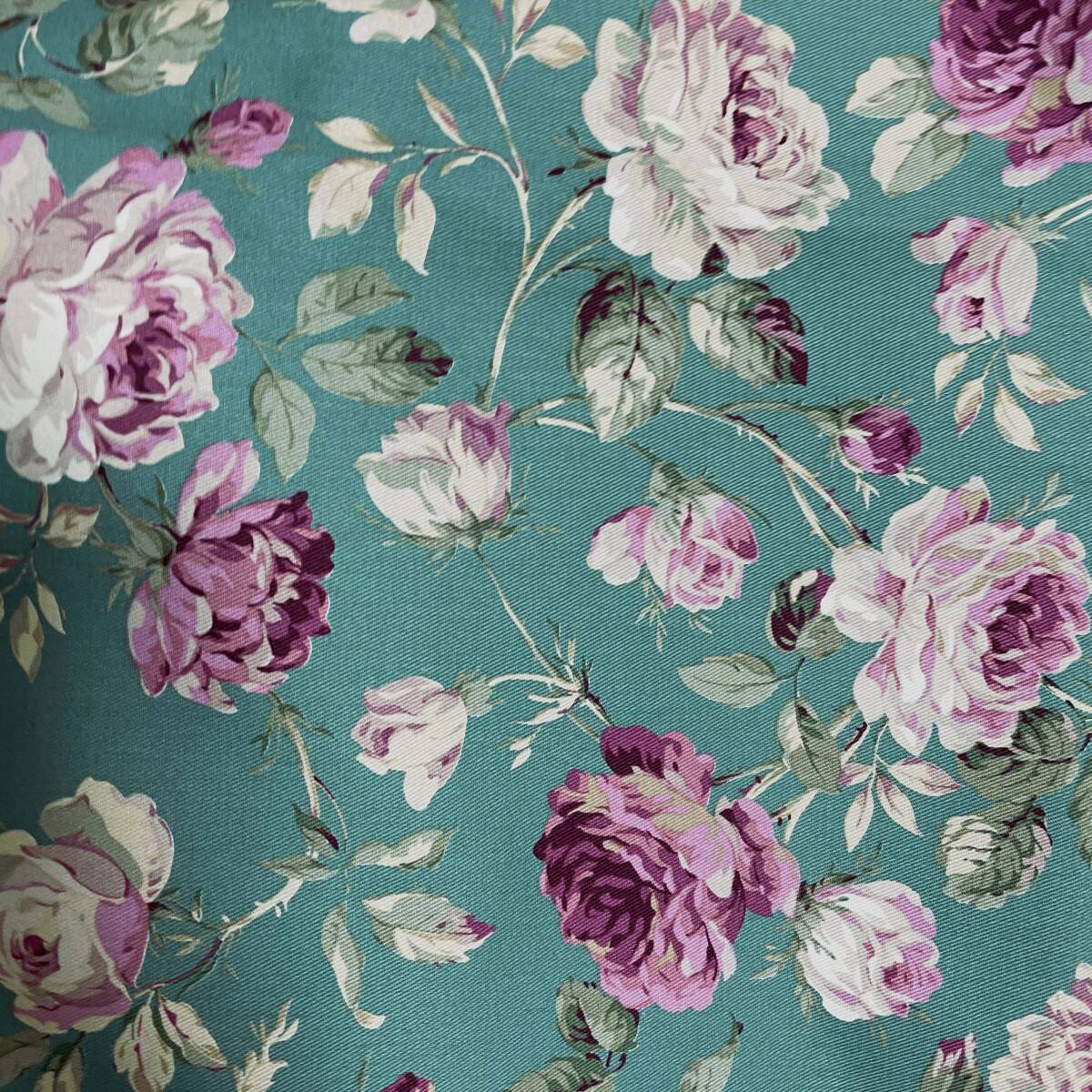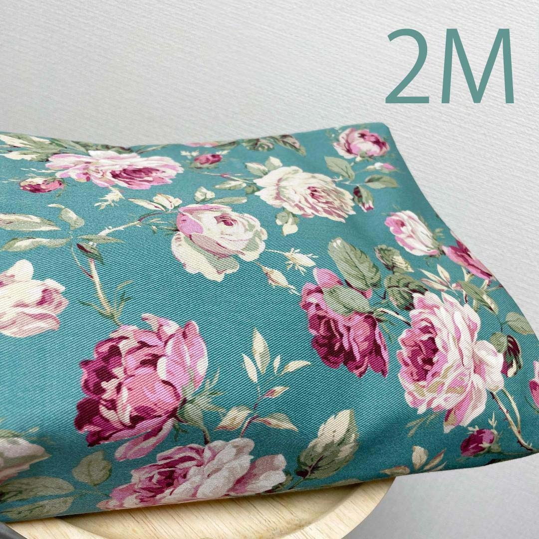 アンティークグリーンにクラシカルなバラ柄ローズ布ばら綿ツイル生地2m薔薇バラ花柄