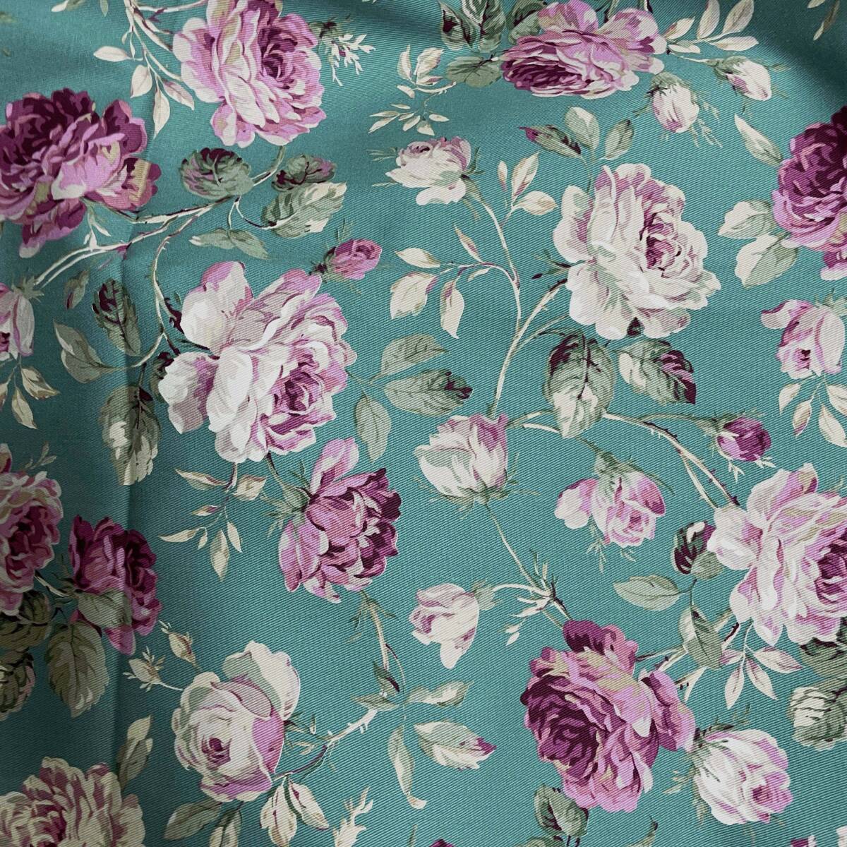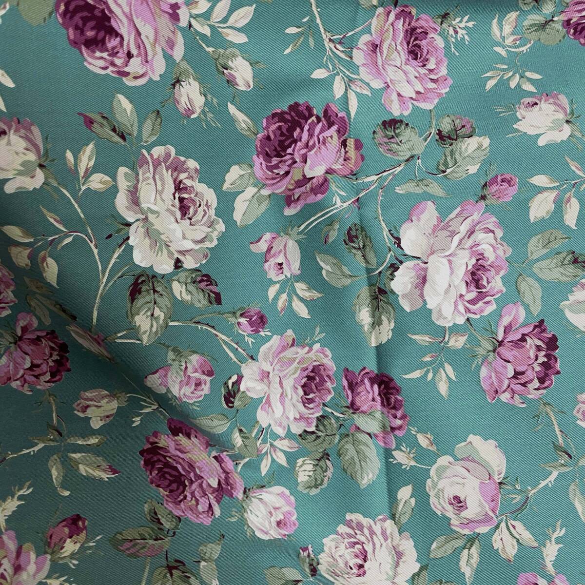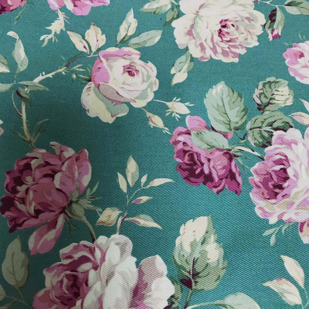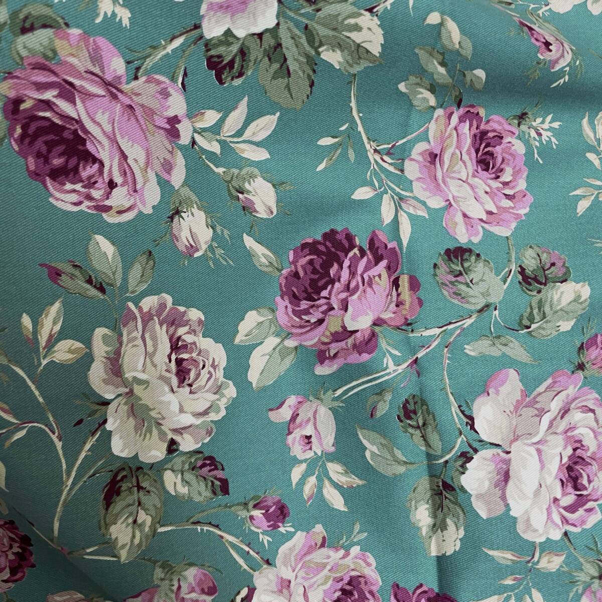 アンティークグリーンにクラシカルなバラ柄ローズ布ばら綿ツイル生地2m薔薇バラ花柄