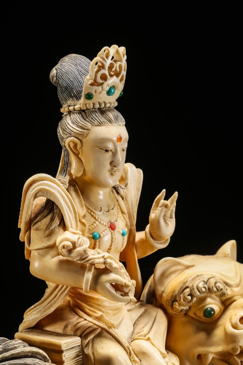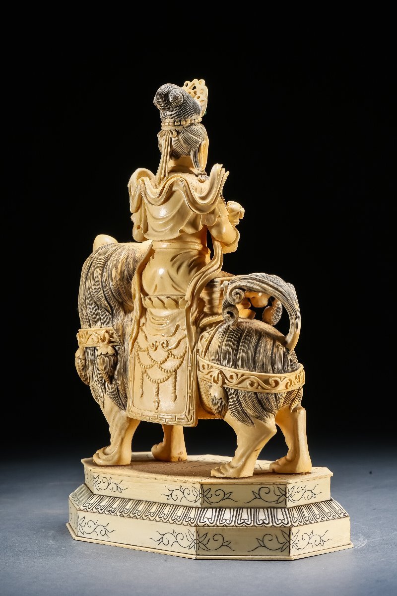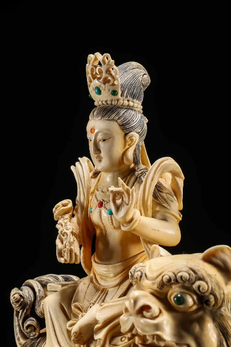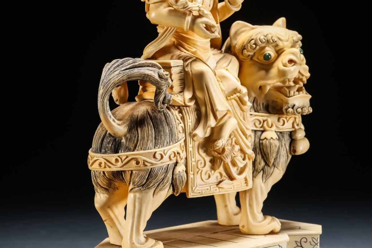 【雲錦】某有名オークション買入 時代物 特殊白材 騎獅菩薩造像 豪華芯料使用 骨董品 古美術Z-42S10