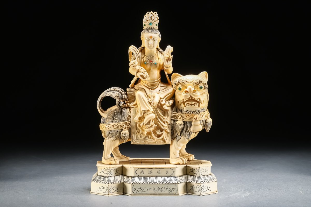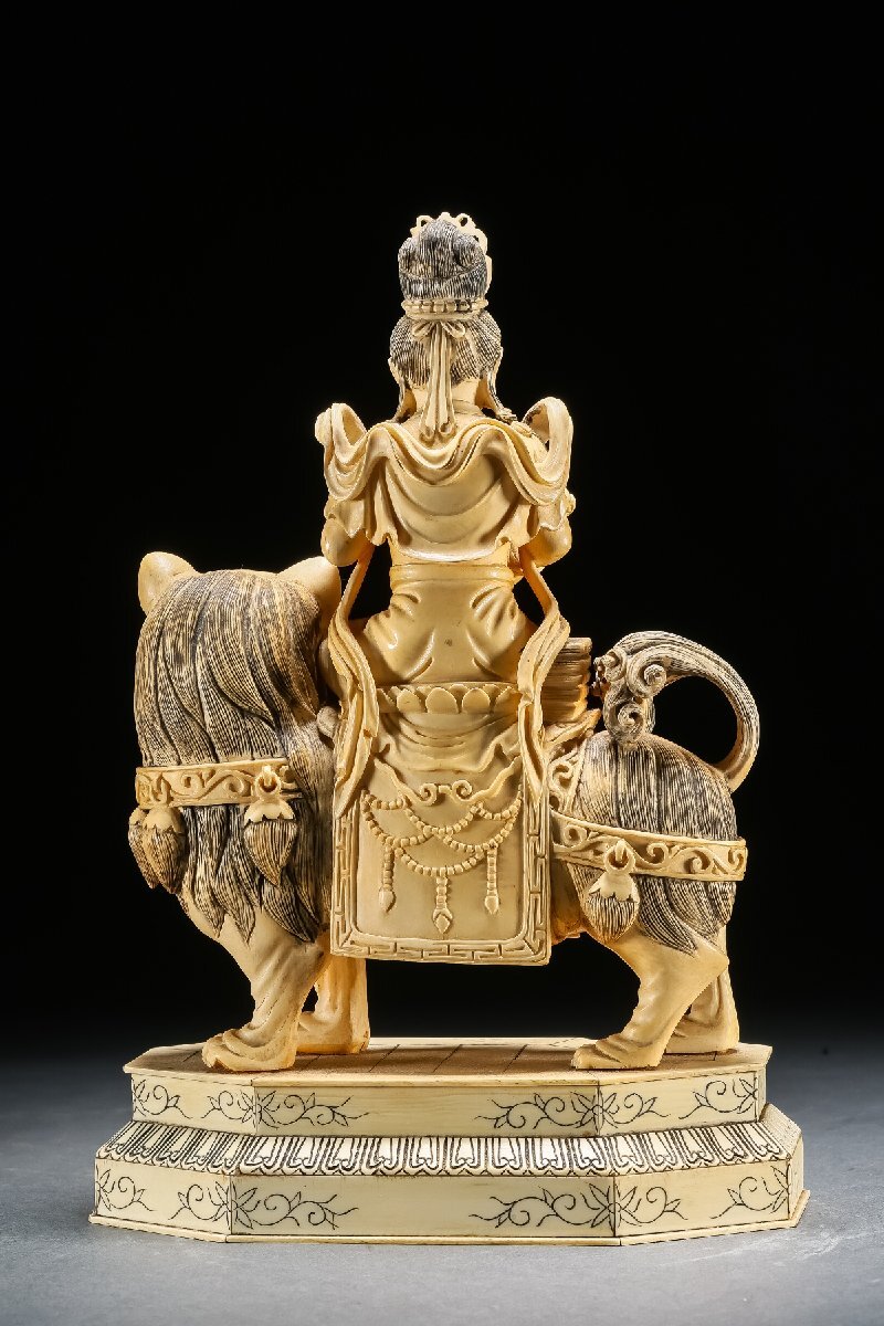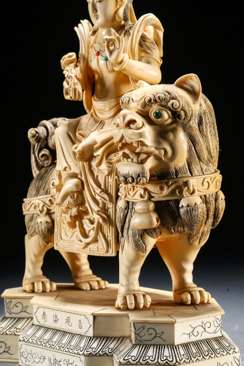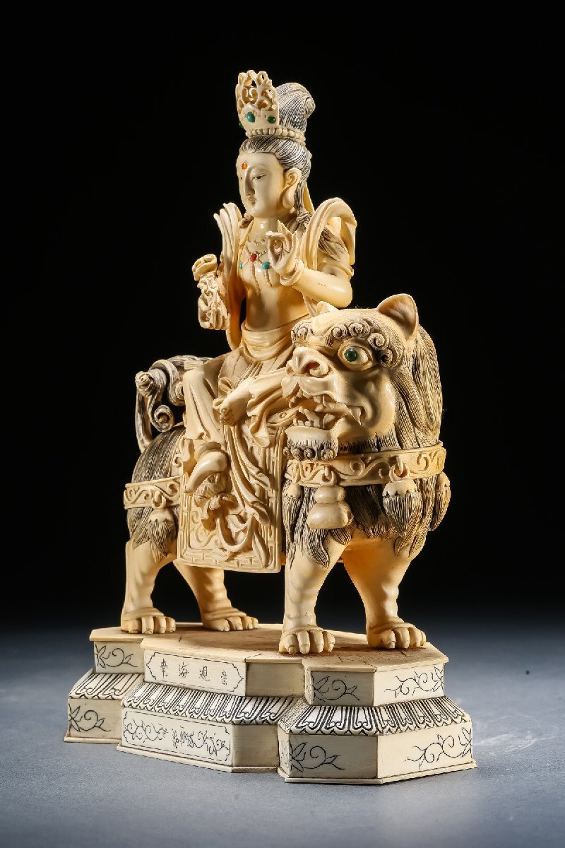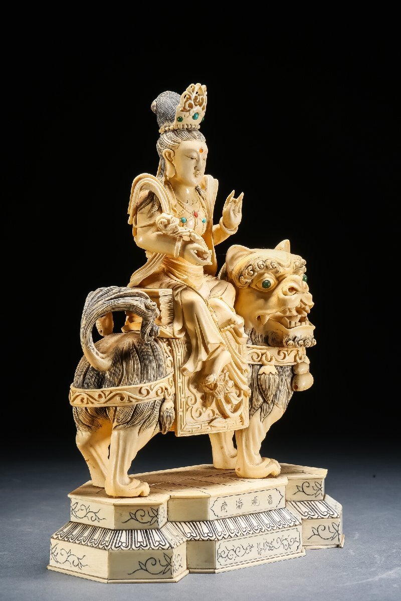 【雲錦】某有名オークション買入 時代物 特殊白材 騎獅菩薩造像 豪華芯料使用 骨董品 古美術Z-42S10