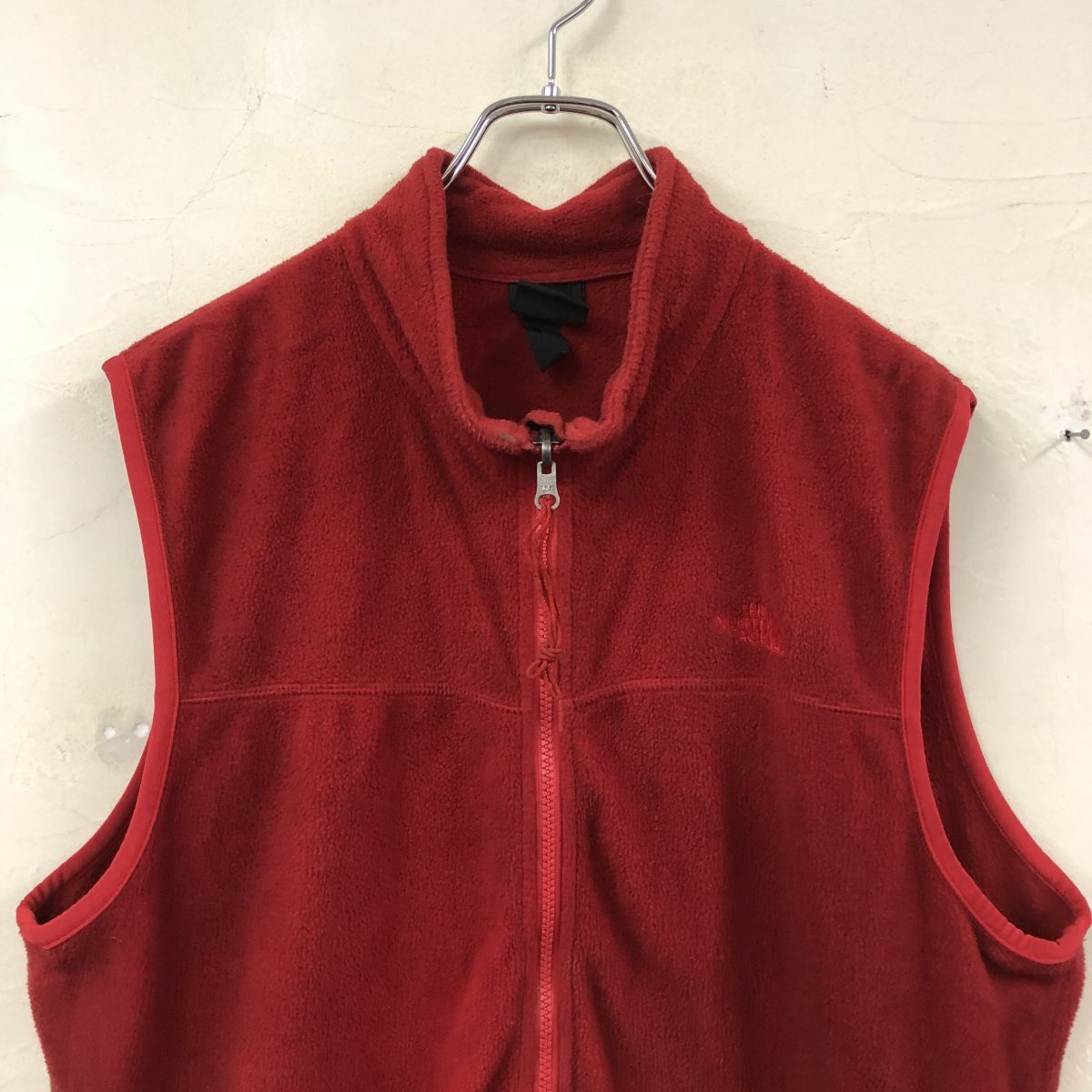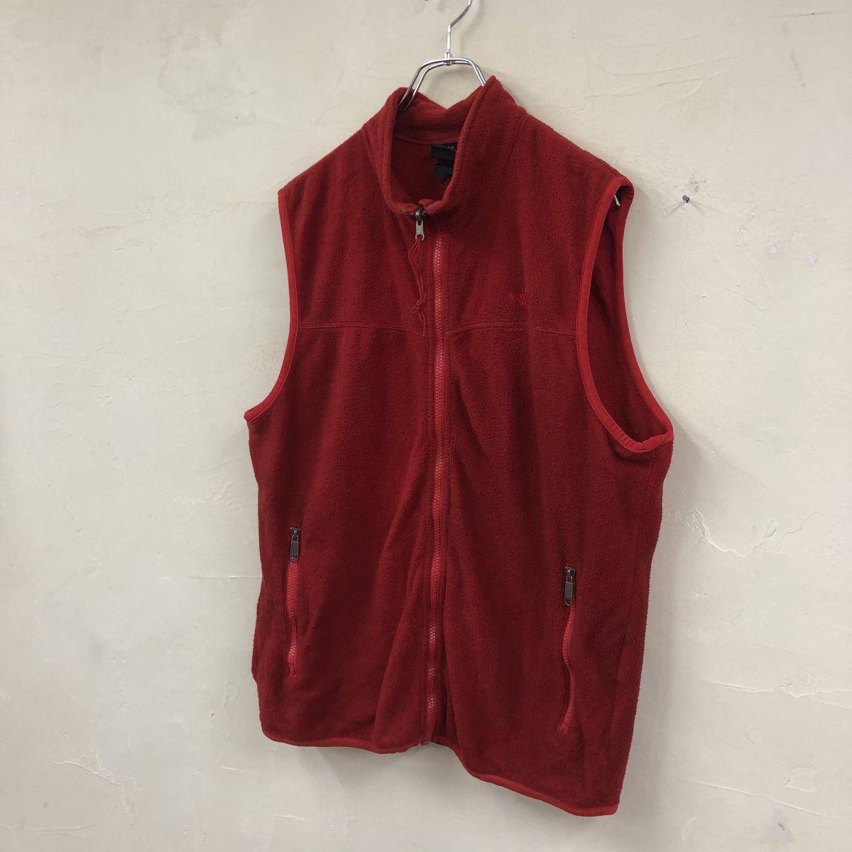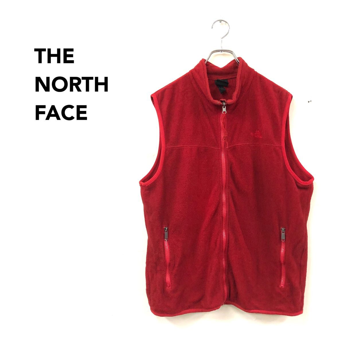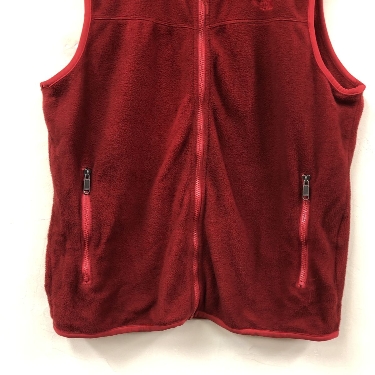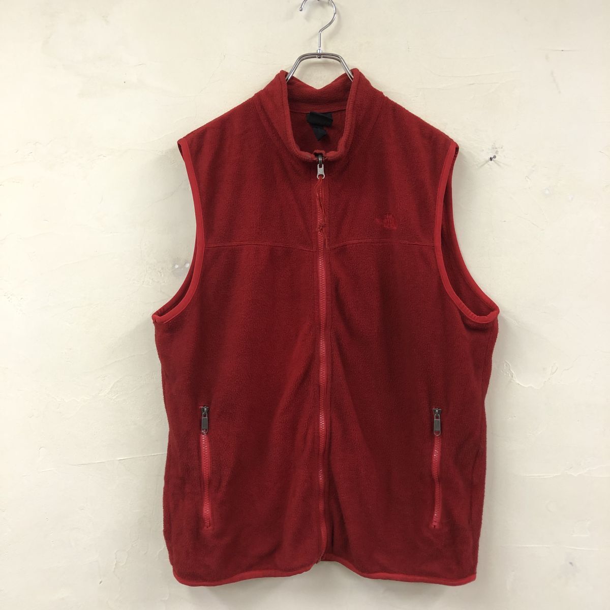 2K1747-G◆ THE NORTH FACE ノースフェイス フリースジップアップベスト 袖口パイピング ポケット ハイネック ◆ sizeLL 赤 ポリエステル