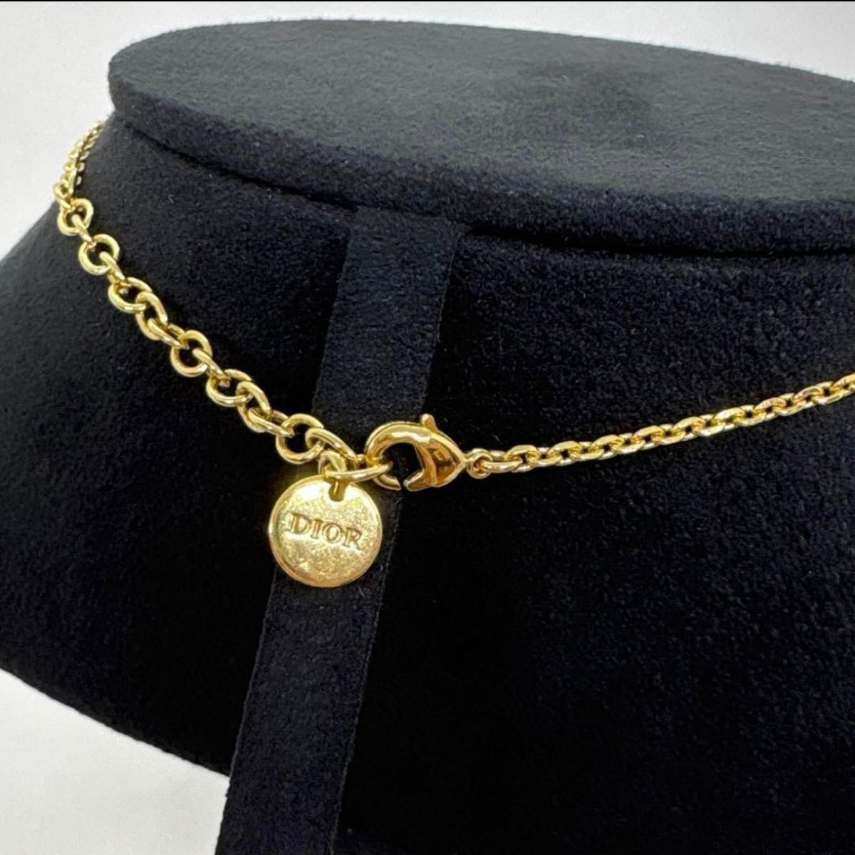 エレガントな「Dior」ロゴと、上品に輝くレジンパールが美しく調和したデザイン。シンプルながら存在感があり、首元を華やかに演出してくれるアイコニックな逸品です。