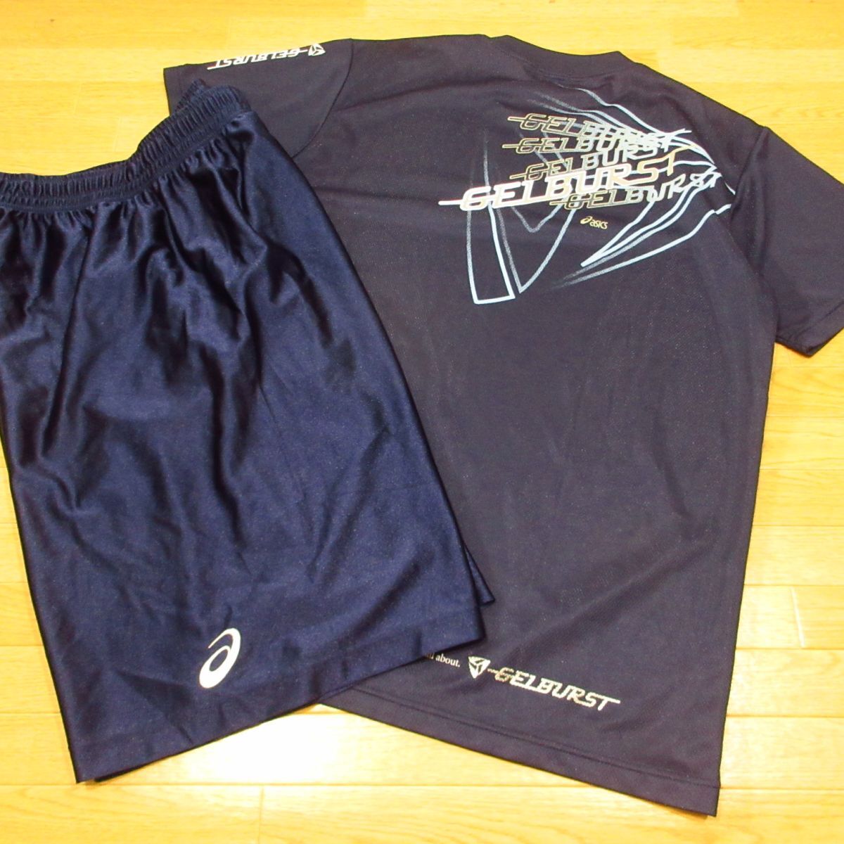 ◎美品!asics GELBURST アシックス バスケ XL 上下セット / ジャージ 半袖 Tシャツ & 光沢 ハーフパンツ 吸汗 速乾 メンズ 紺◆BA3491