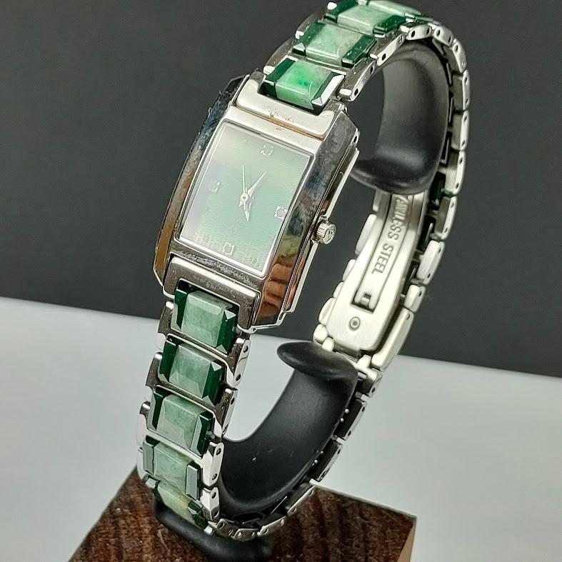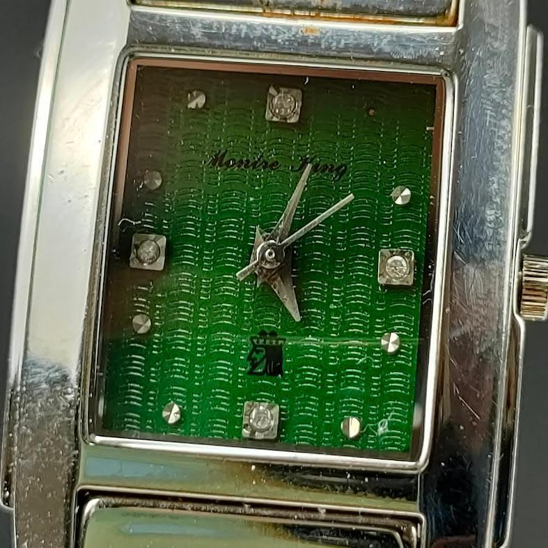稼働品 モンテキング 定価346,000¥ 天然ダイヤ QZ ジェイダイト 翡翠 腕時計 レディース アナログ 3針