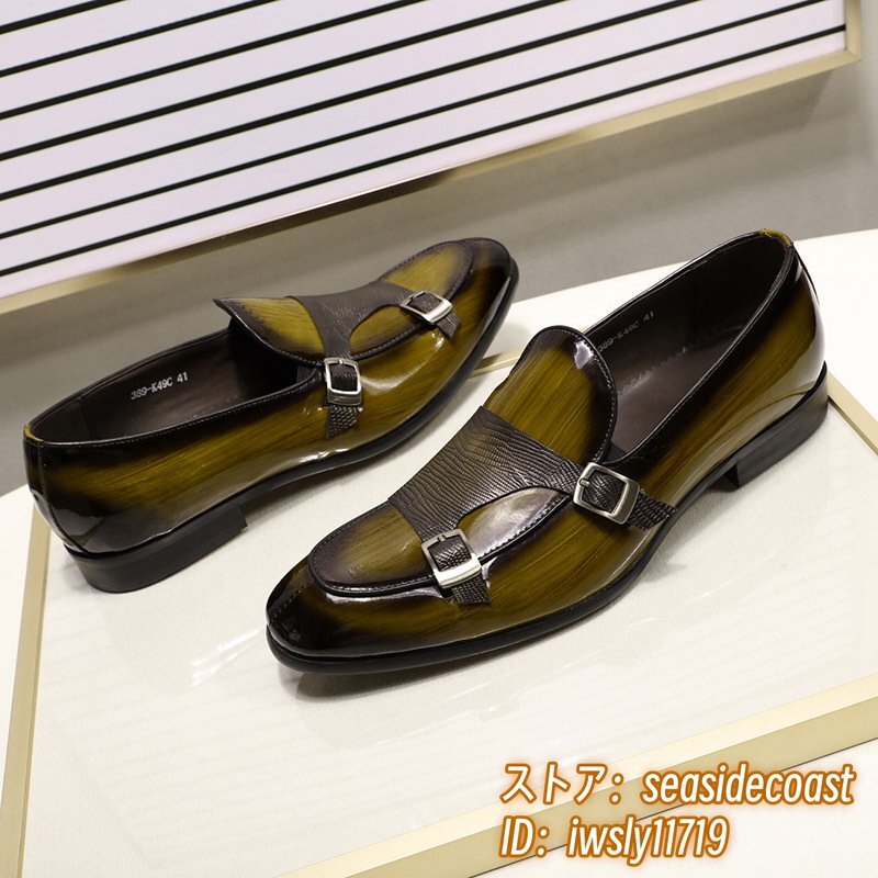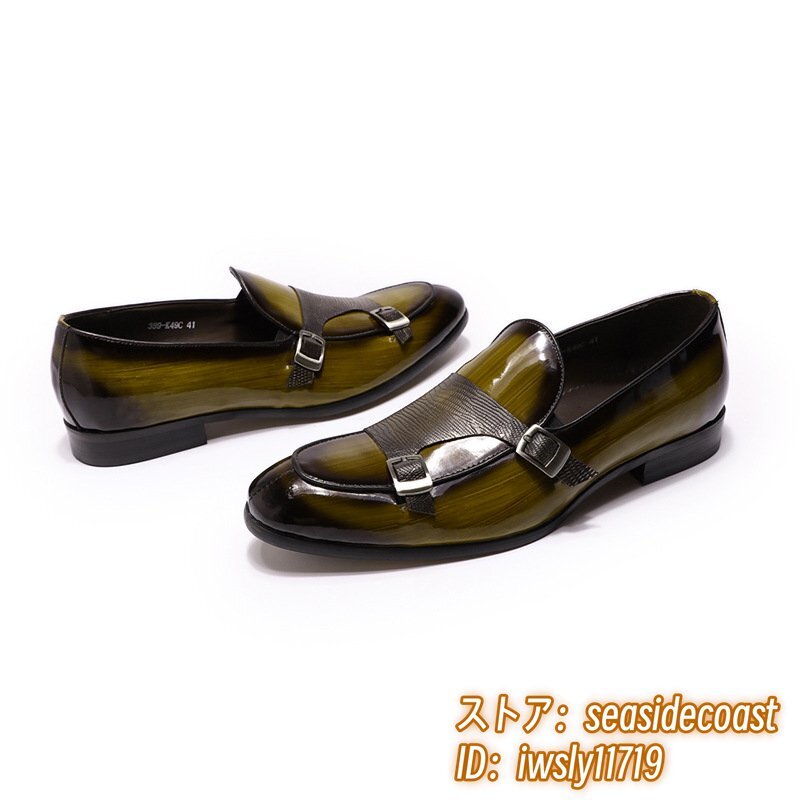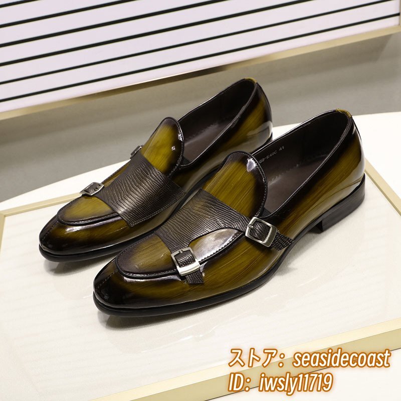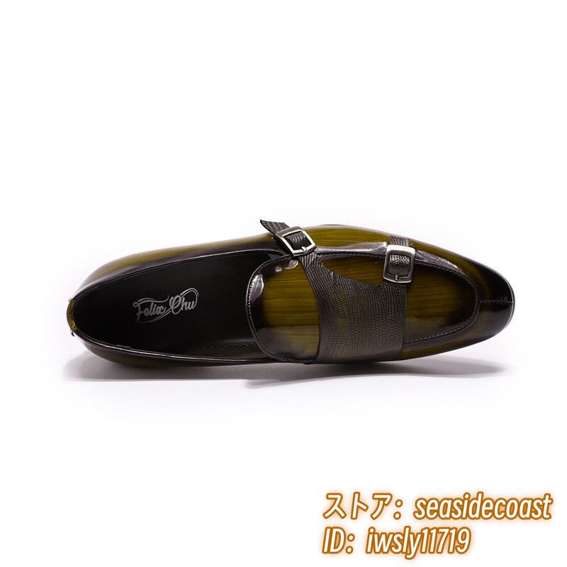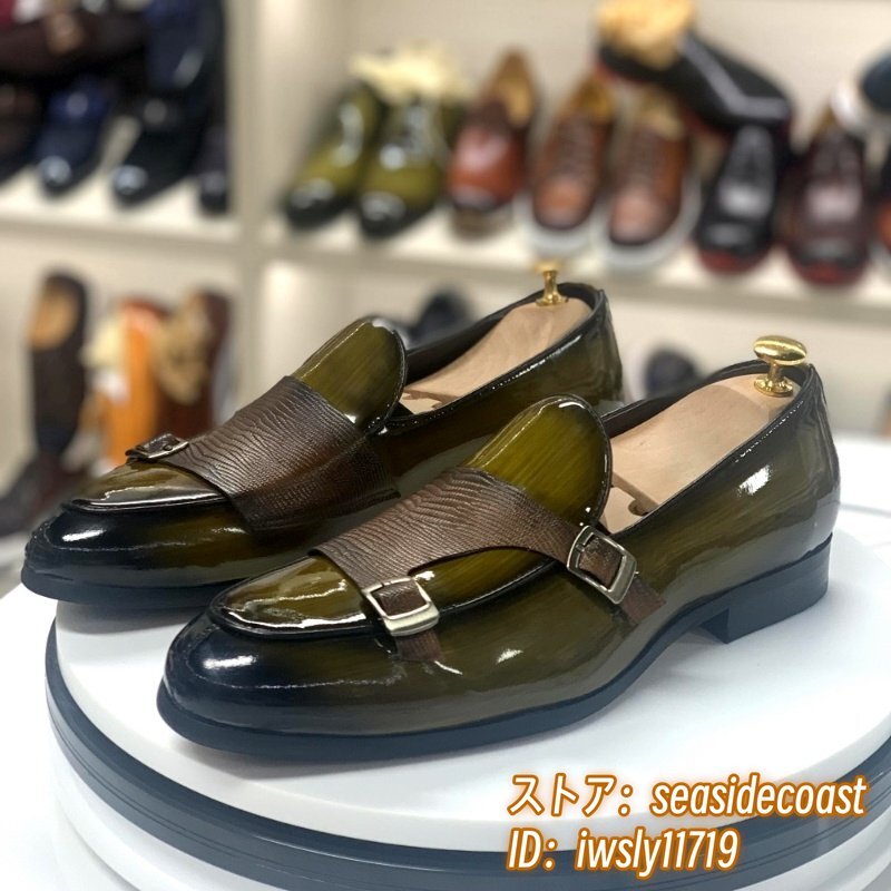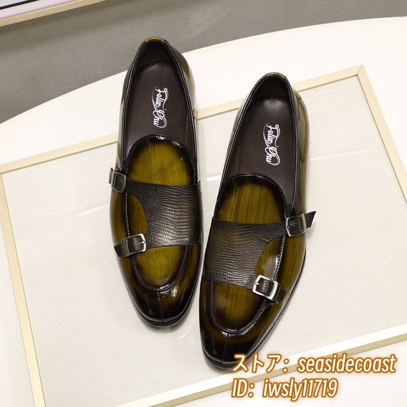 定価9万◆最高級 ビジネスシューズ 新品 メンズ 手作り 本革 ローファー スリッポン 個性 レザーシューズ 牛革通勤 結婚式 グリーン 24.5cm