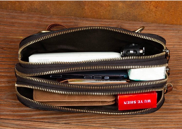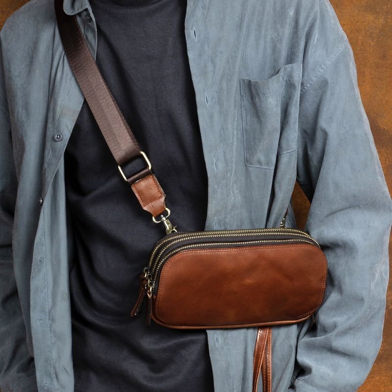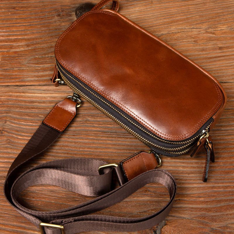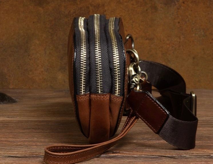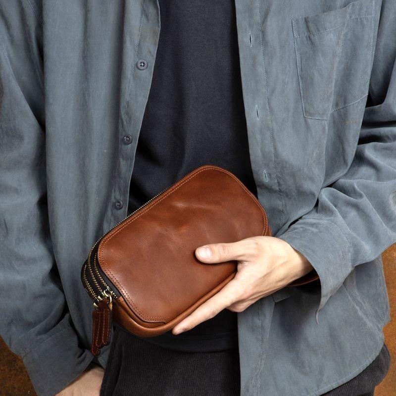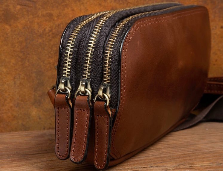 最新型トリプルファスナー 本革レザー ハンドメイド 長財布 牛革ショルダーバッグ ラウンドファスナー 男性用財布 ブラウン