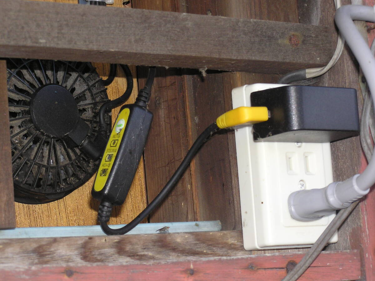 6枚目は不要になった空調服ファン(DC5V)を換気扇代わりに使用した参考写真です
