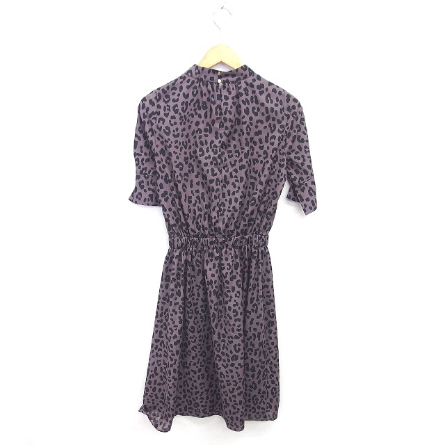 ジュエルチェンジズ Jewel Changes アローズ ワンピース ロング 総柄 フレア バンドカラー プルオーバー 半袖 36 茶 黒 ブラウン ブラック /TT レディース
