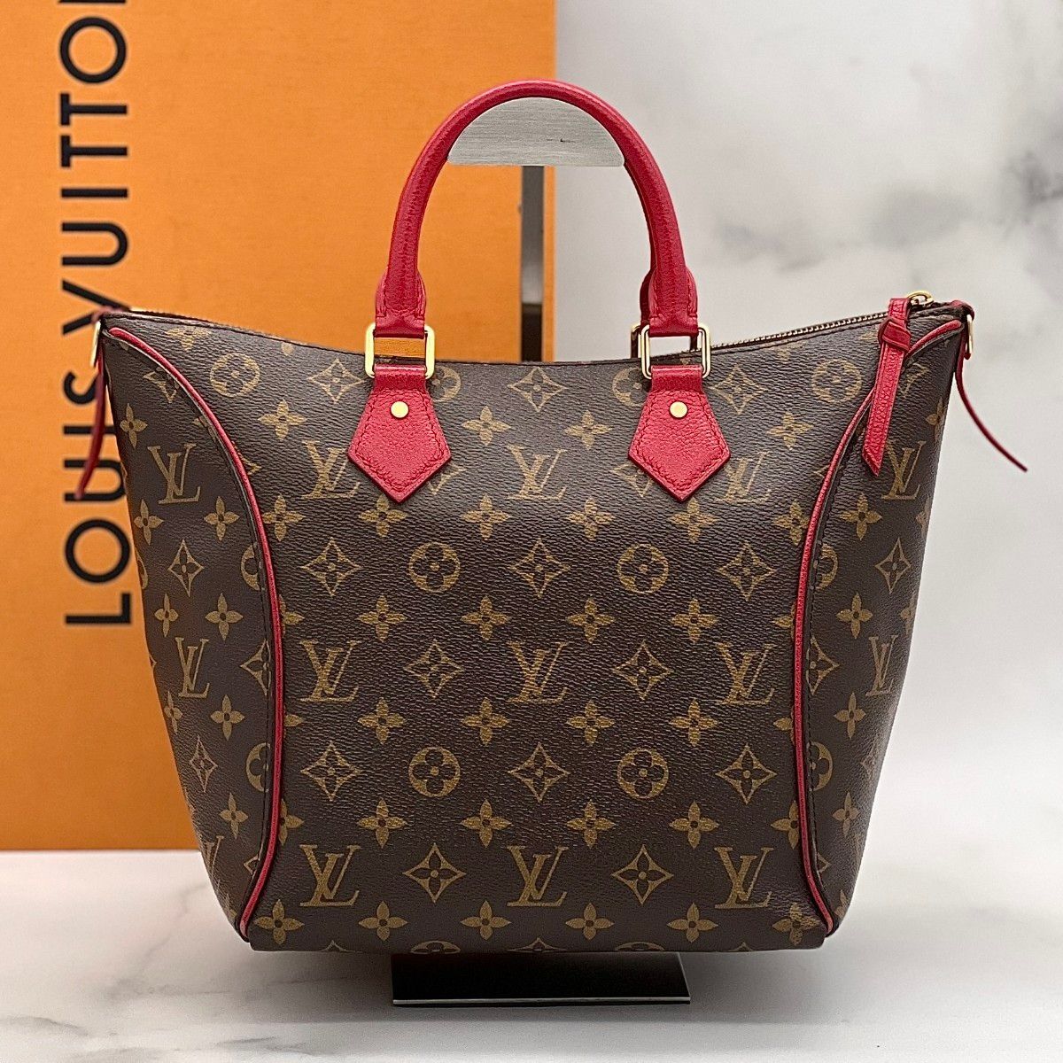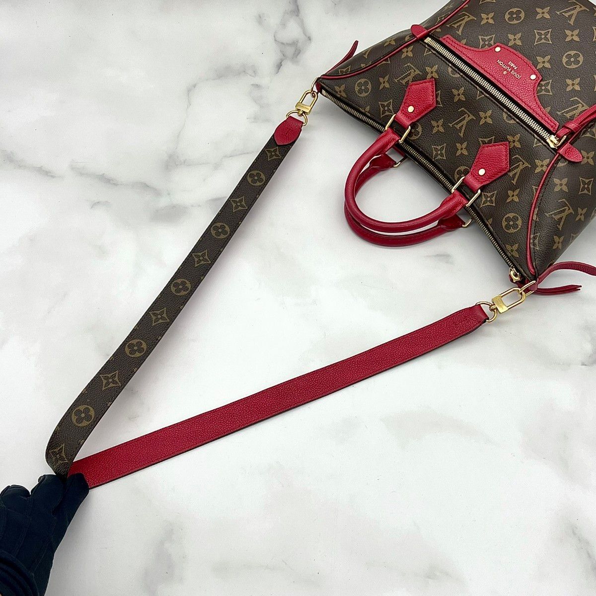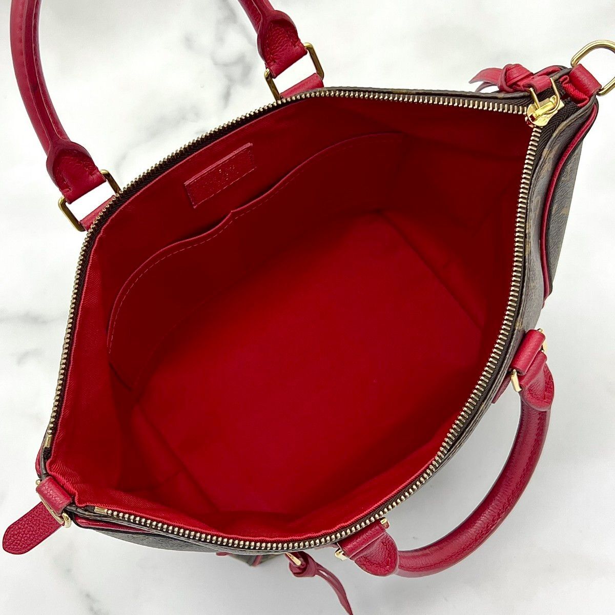 ノグラム・キャンバスにレッドレザーを組み合わせた、気品あふれる2WAYバッグ!