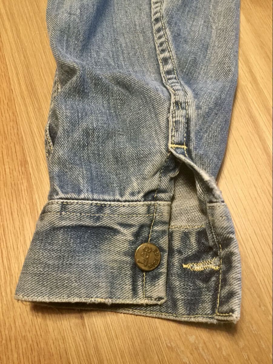 四角タグ(写真③)もキレイに残っていて、インディゴがイイ感じに色落ちしてコンディション良好です。