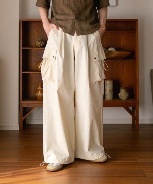 キーワード:カーゴパンツ メンズ ウエストゴム ストレート ハイウエスト フルレングス ワイドパンツ 無地