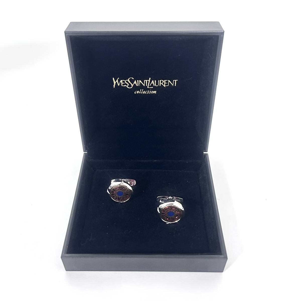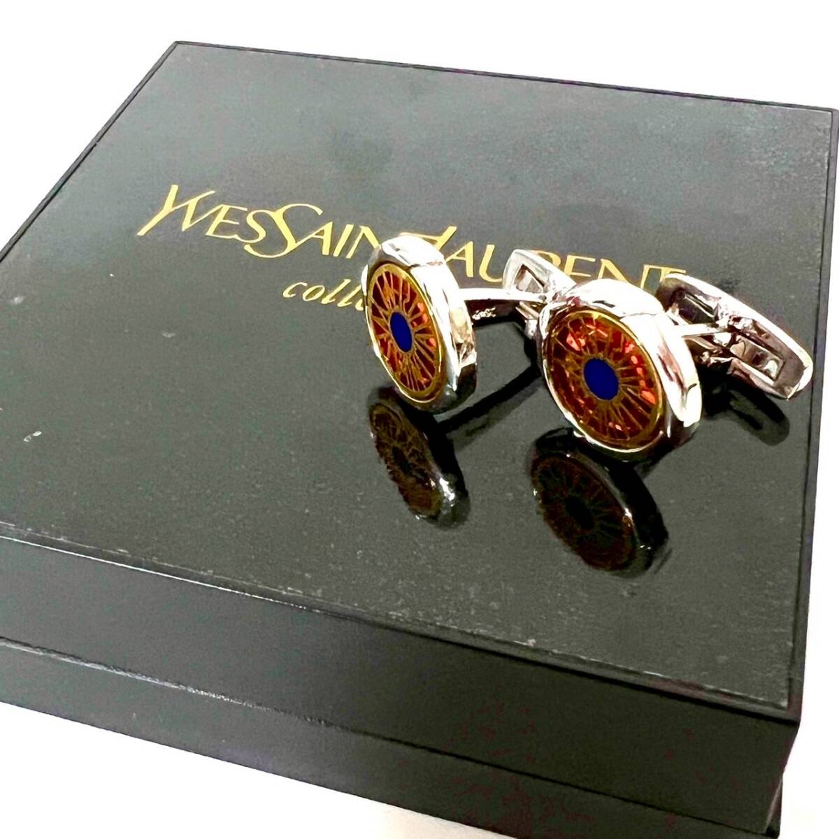 SD2518 美品! 格安! YVES SAINT LAURENT イブサンローラン ロゴ ラウンド シルバーメタル カフス カフリンクス カフスボタン