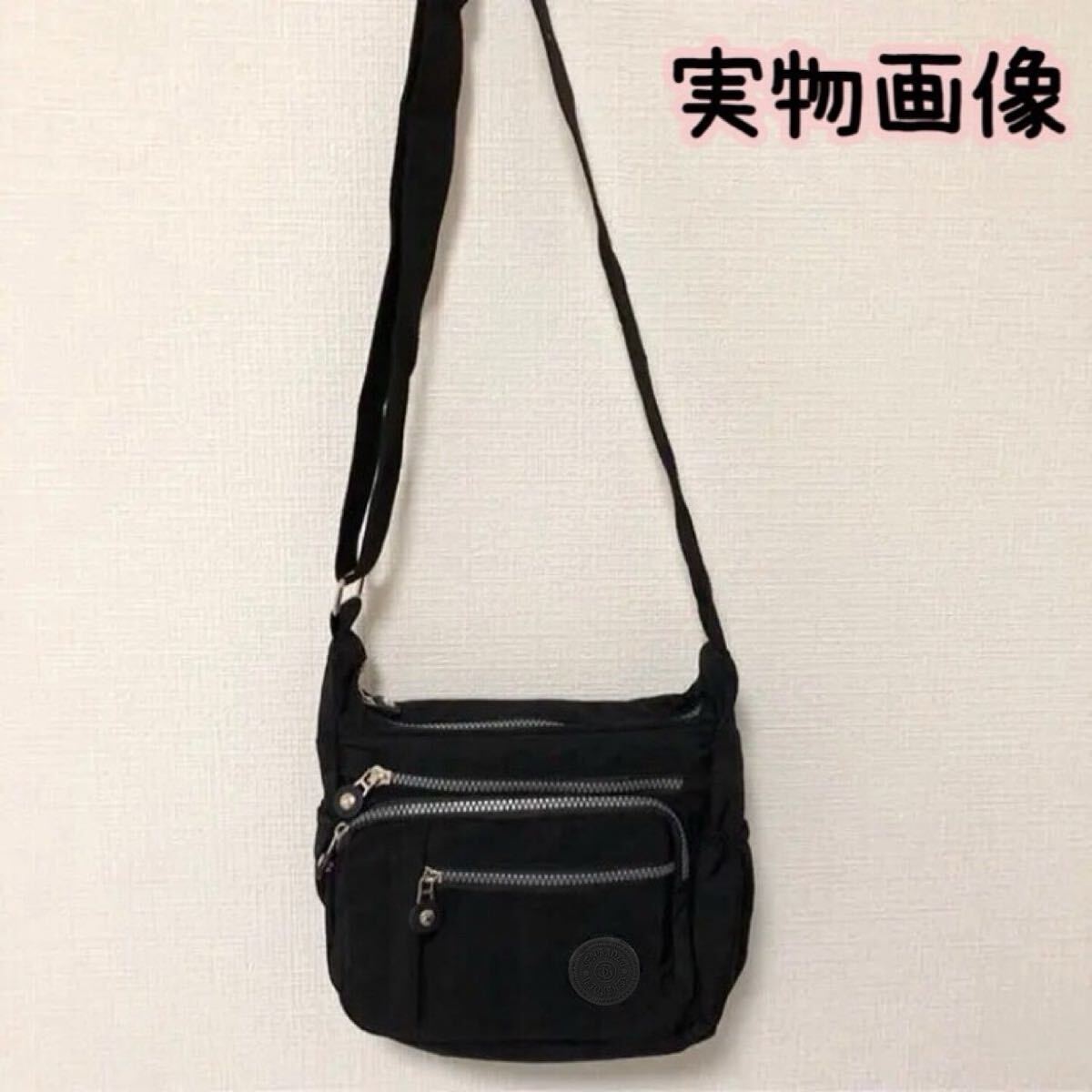 大容量 レディース ナイロン ショルダーバッグ 斜めがけバッグ ポケットたくさん ブラック 黒