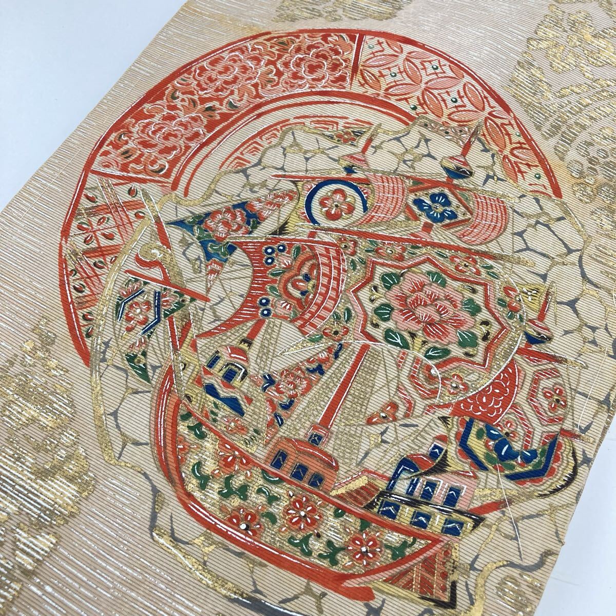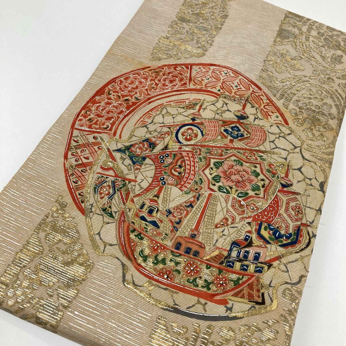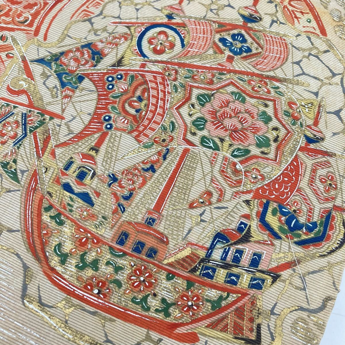 【浪漫げいと】正絹 アンティーク名古屋帯 船 夏物 大正浪漫 大正ロマン No.O169