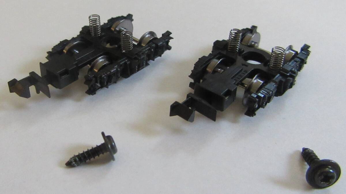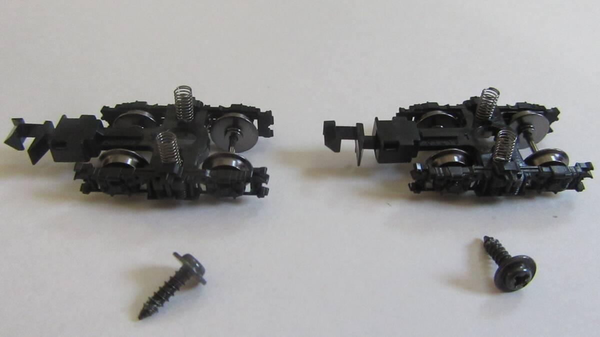 TOMIXの国鉄客車 カニ24-100形(銀帯)の台車2個セットです。品番9538のばらし品になります。