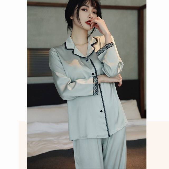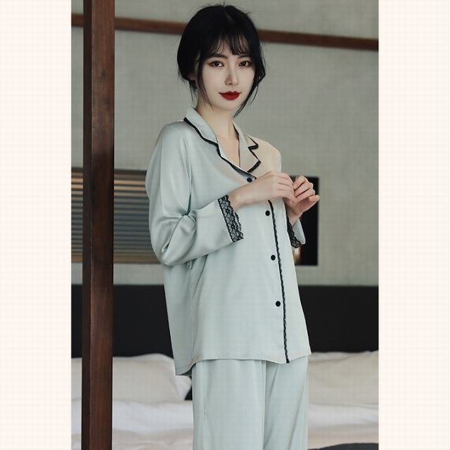 パジャマ レディース レーヨン 前開き 長袖 ルームウェア 肌に優しい ゆったり ロングパンツ 上下セット 柔らか ライトグリーン XLサイズ