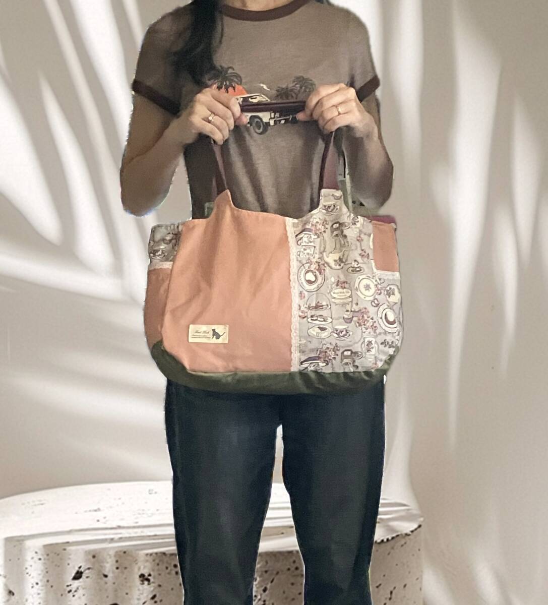 ☆ハンドメイドバッグ 切り替えパッチのトートバッグです。