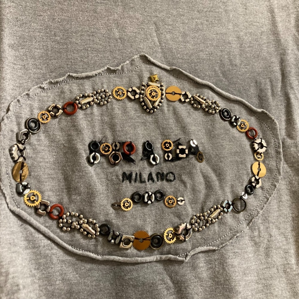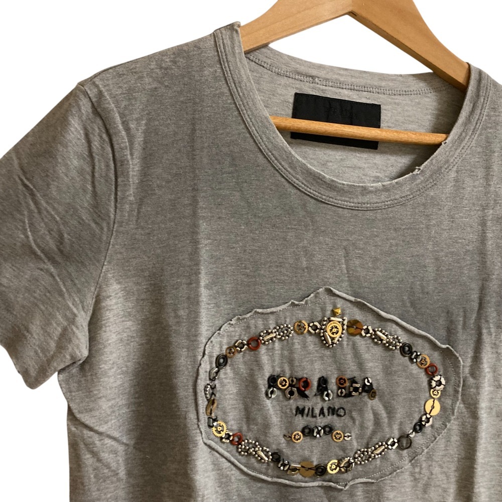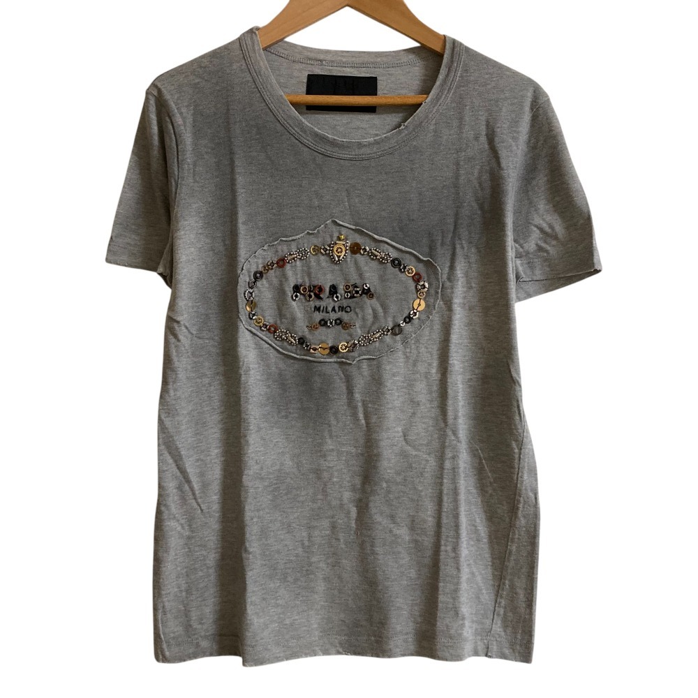 美品 PRADA プラダ メタルパーツロゴ クルーネック ショートスリーブ Tシャツ カットソー Mサイズ グレー