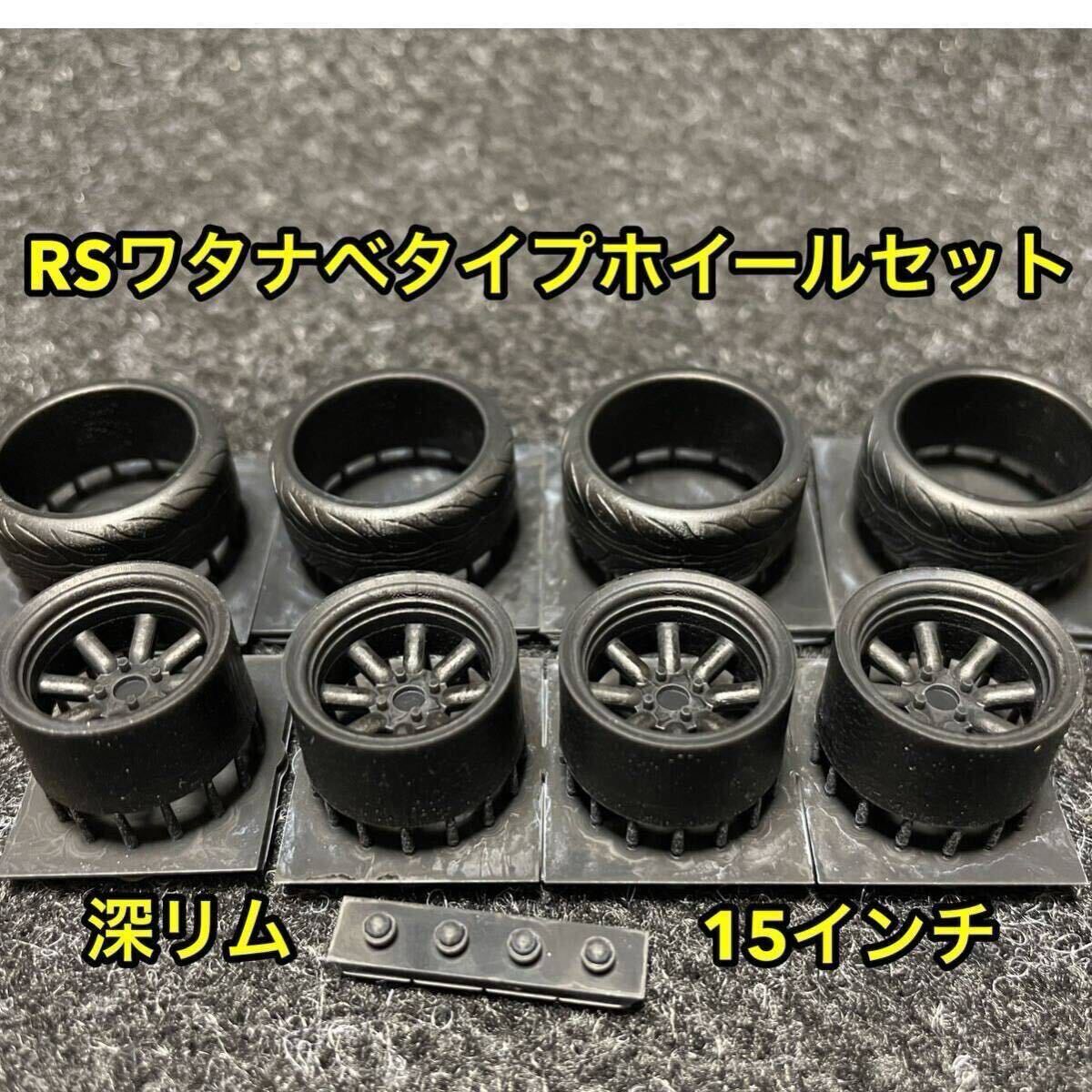*3Dプリンター製の1/24 汎用RSワタナベ8スポークタイプホイール4個セットです。タイヤ、ハブキャップが付属します。