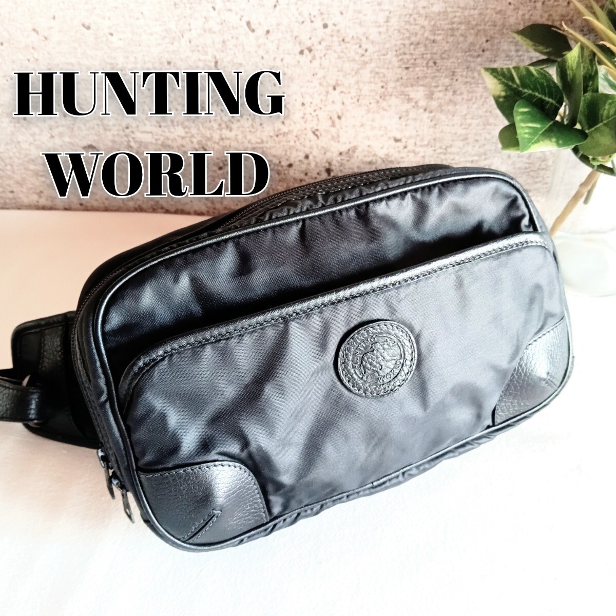 【商品】 HUNTING WORLD ハンティング ワールド ヴィンテージ ナイロン 本革 レザー ウエストポーチ ボディバッグ クラッチバッグ ポシェット 2way 鞄 オールド VINTAGE イタリア製