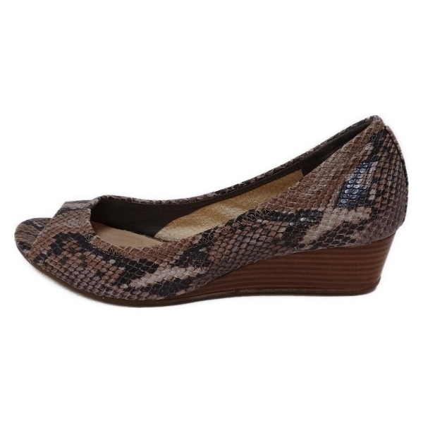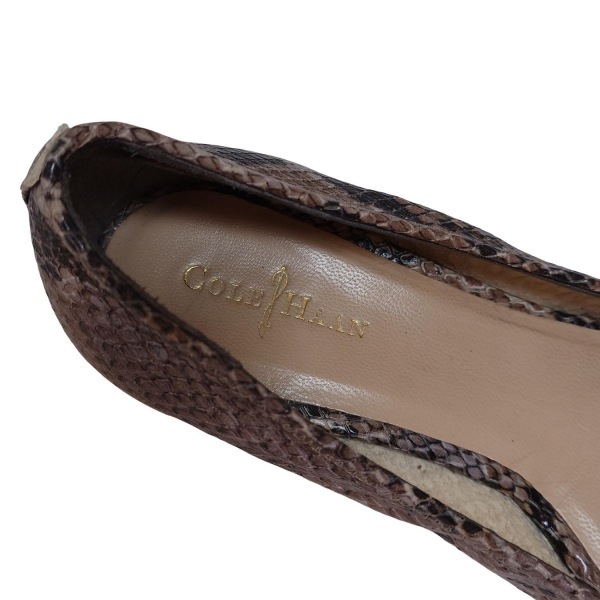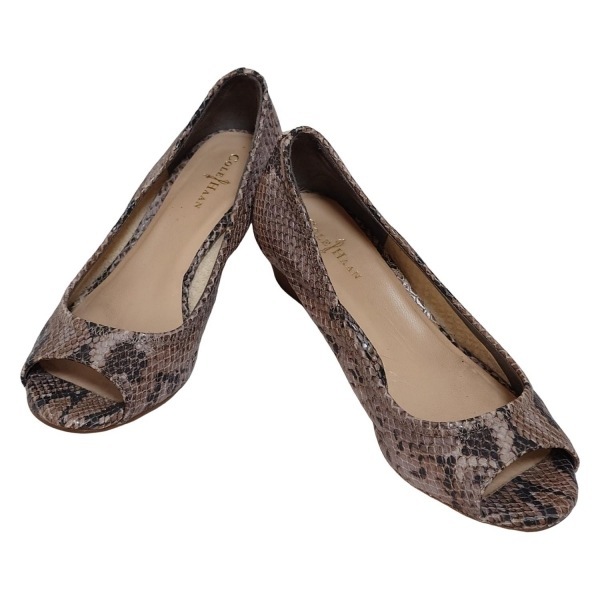 コールハーン COLE HAAN パンプス 5 1/2 - レザー ベージュ×ブラウン×黒 レディース 型押し加工/オープントゥ/ウェッジソール 靴