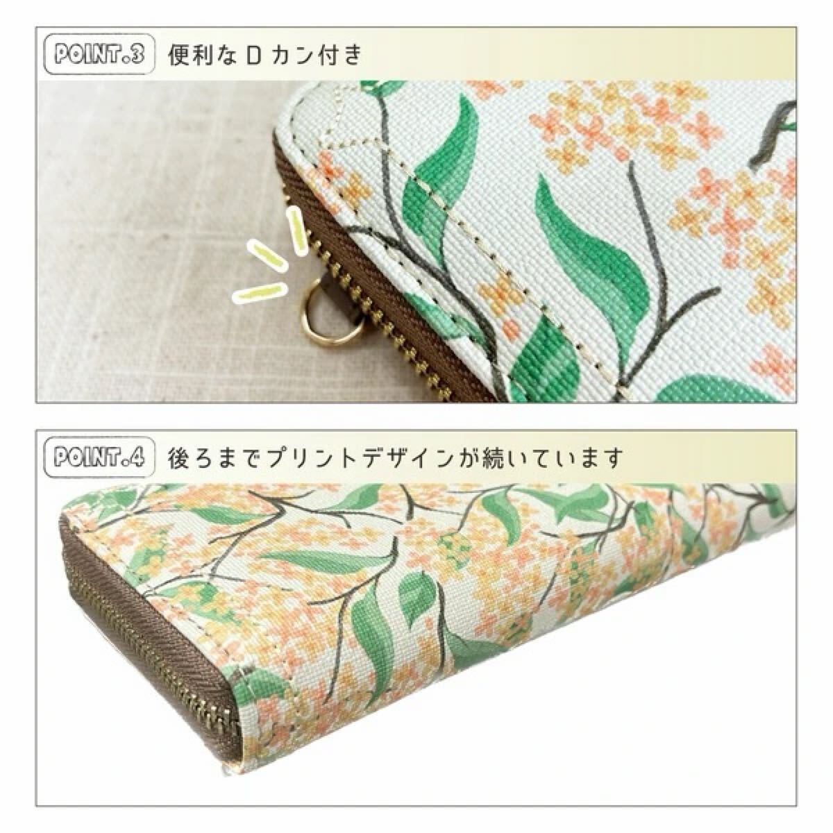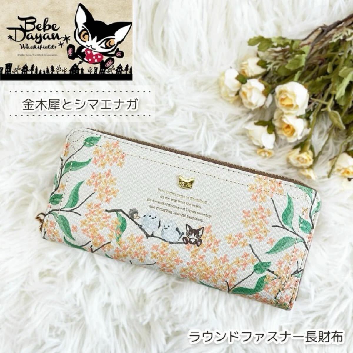 ベベダヤン 金木犀とシマエナガ ラウンドファスナー長財布