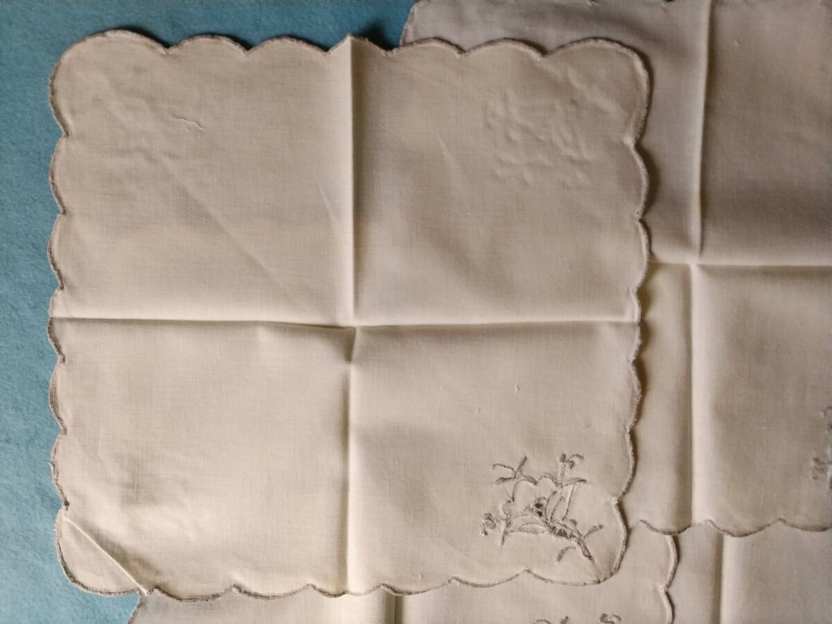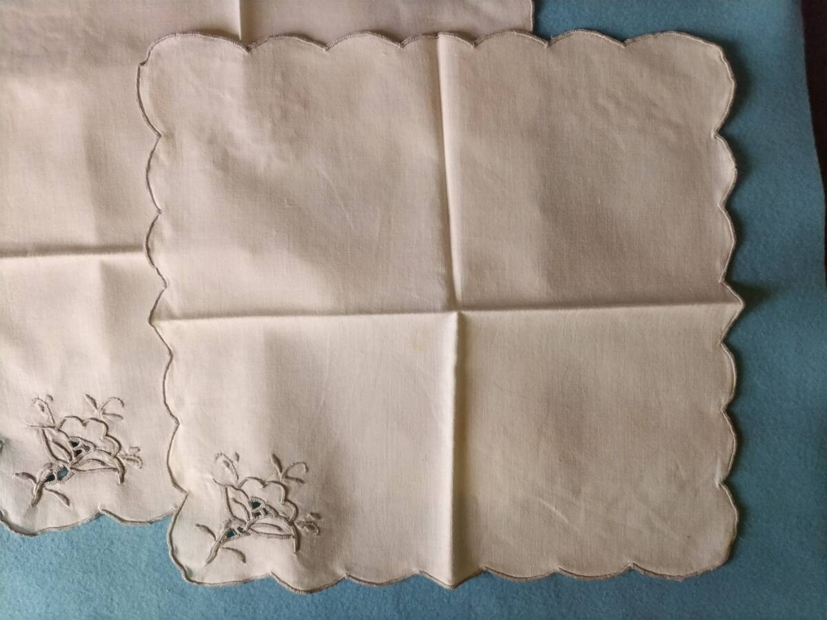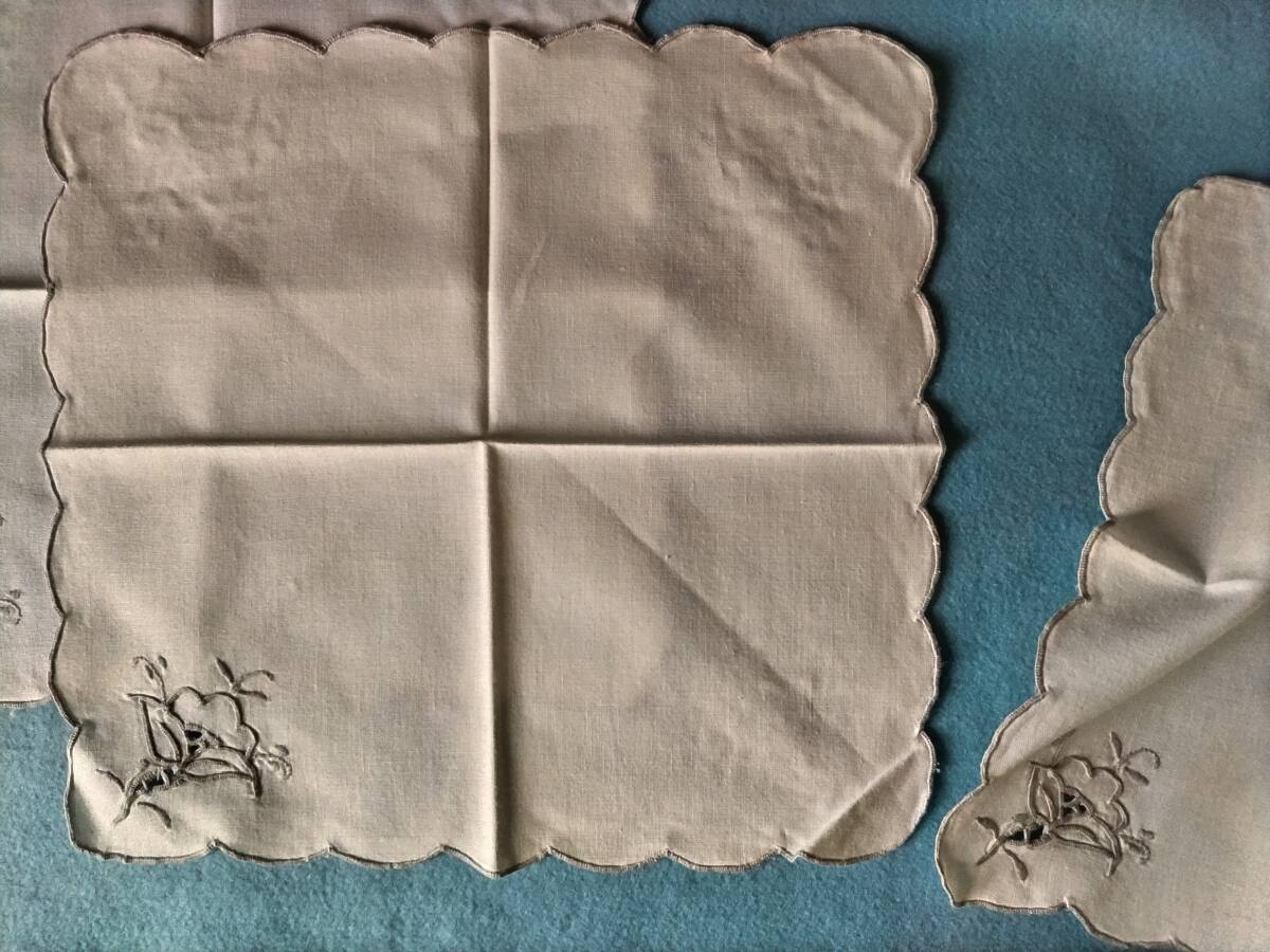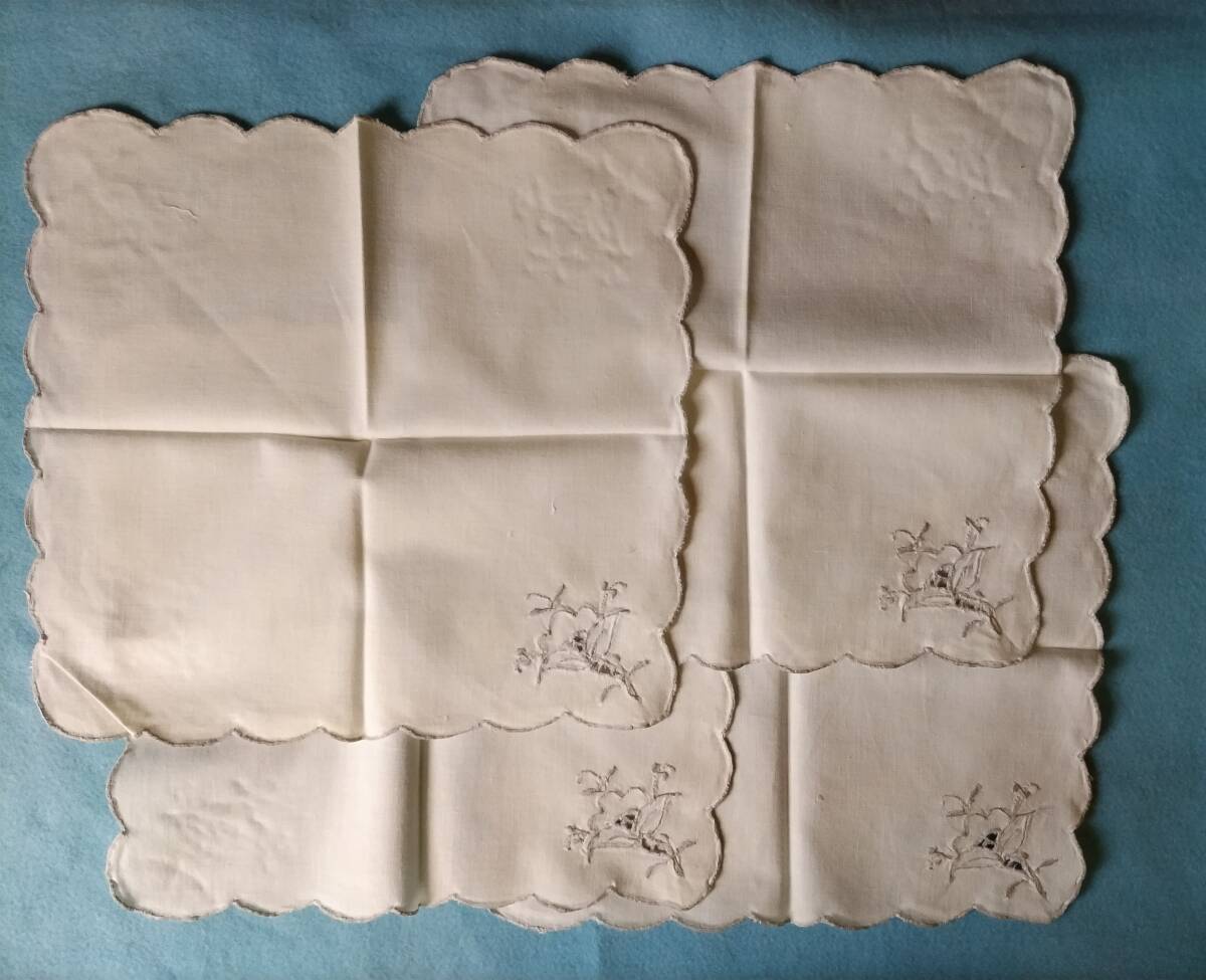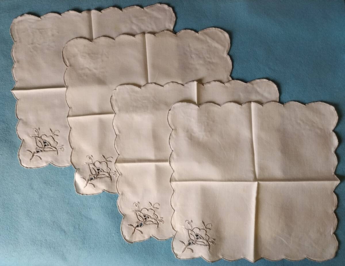 英国ビンテージ 刺繍 テーブルクロス マット ドイリー 花柄 セルヴィエット ナプキン 4枚1セット 小さな敷物 イギリス アンティーク調 ⑩