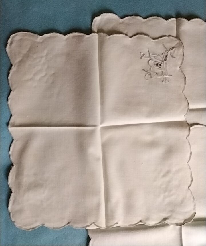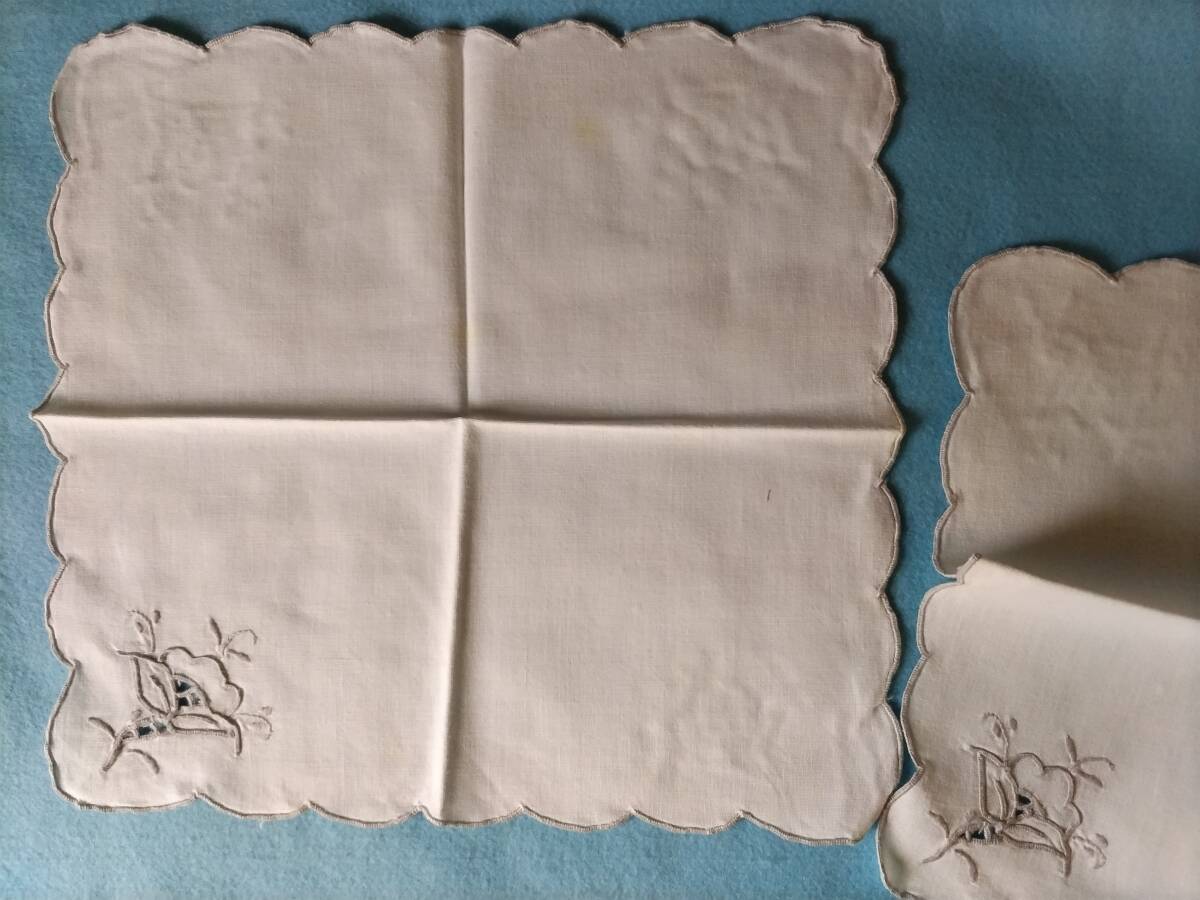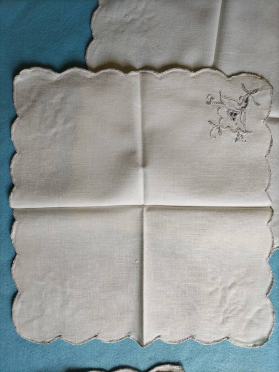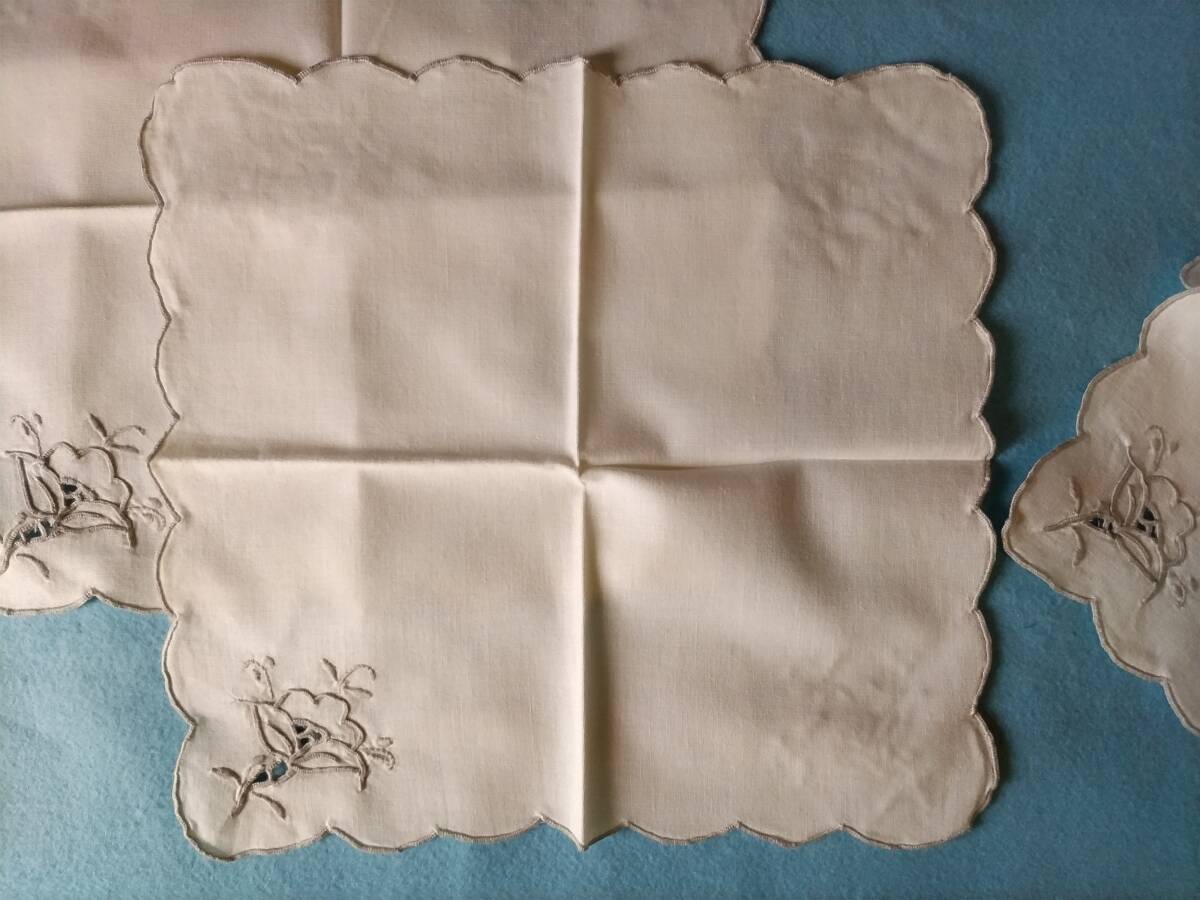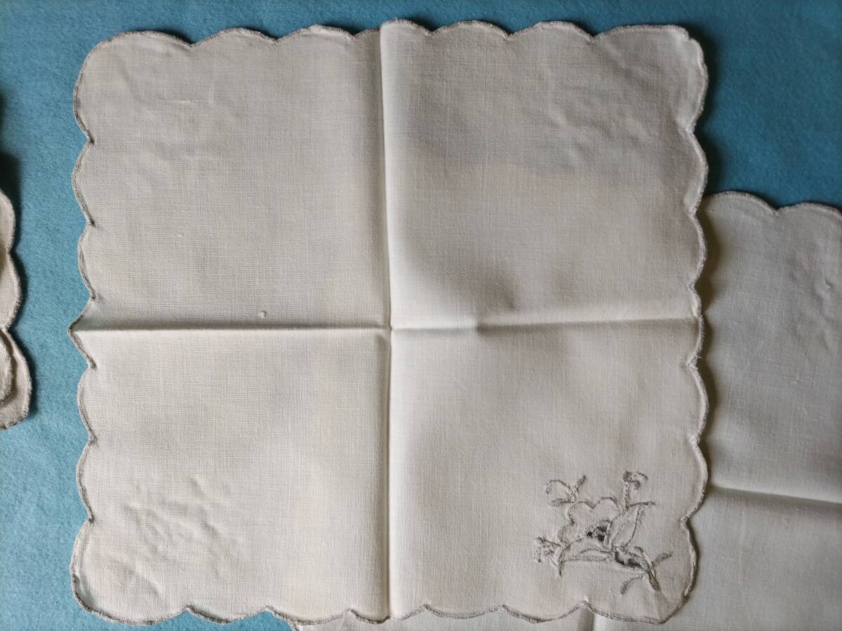 英国ビンテージ 刺繍 テーブルクロス マット ドイリー 花柄 セルヴィエット ナプキン 4枚1セット 小さな敷物 イギリス アンティーク調 ⑩