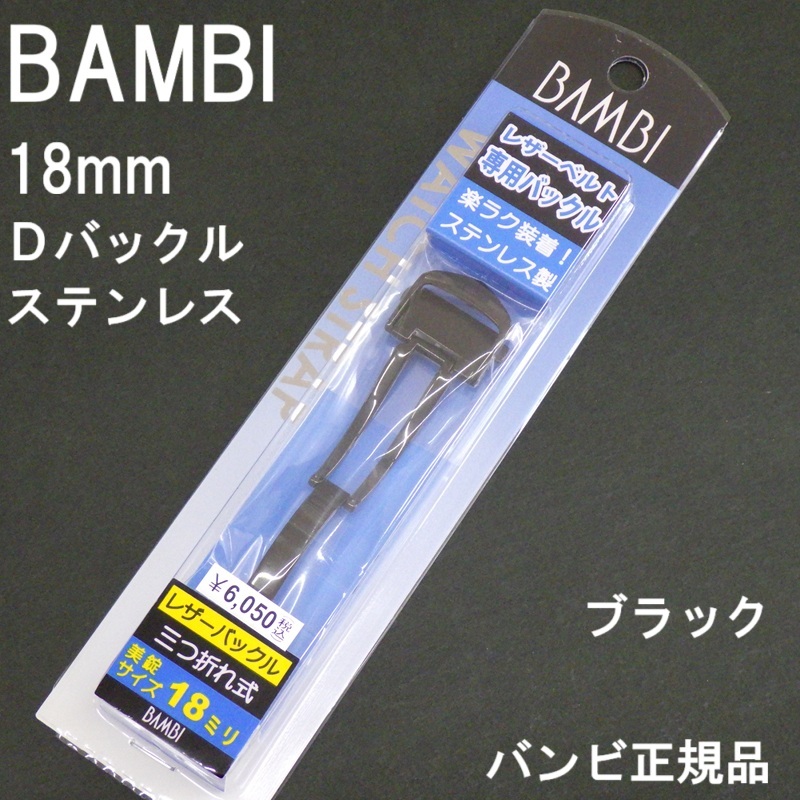 送料無料★特価 新品★BAMBI Dバックル 金具 日本製ステンレスで丈夫★時計バンド 幅18mm 厚4mm対応 黒 ブラック★バンビ正規品