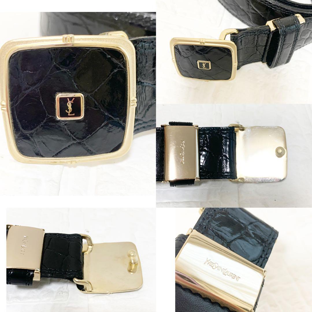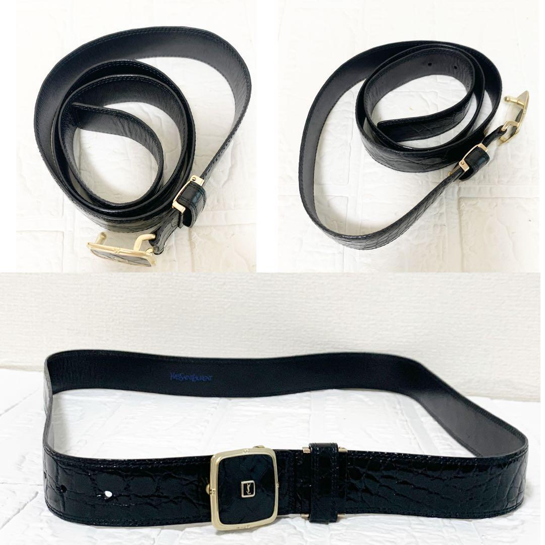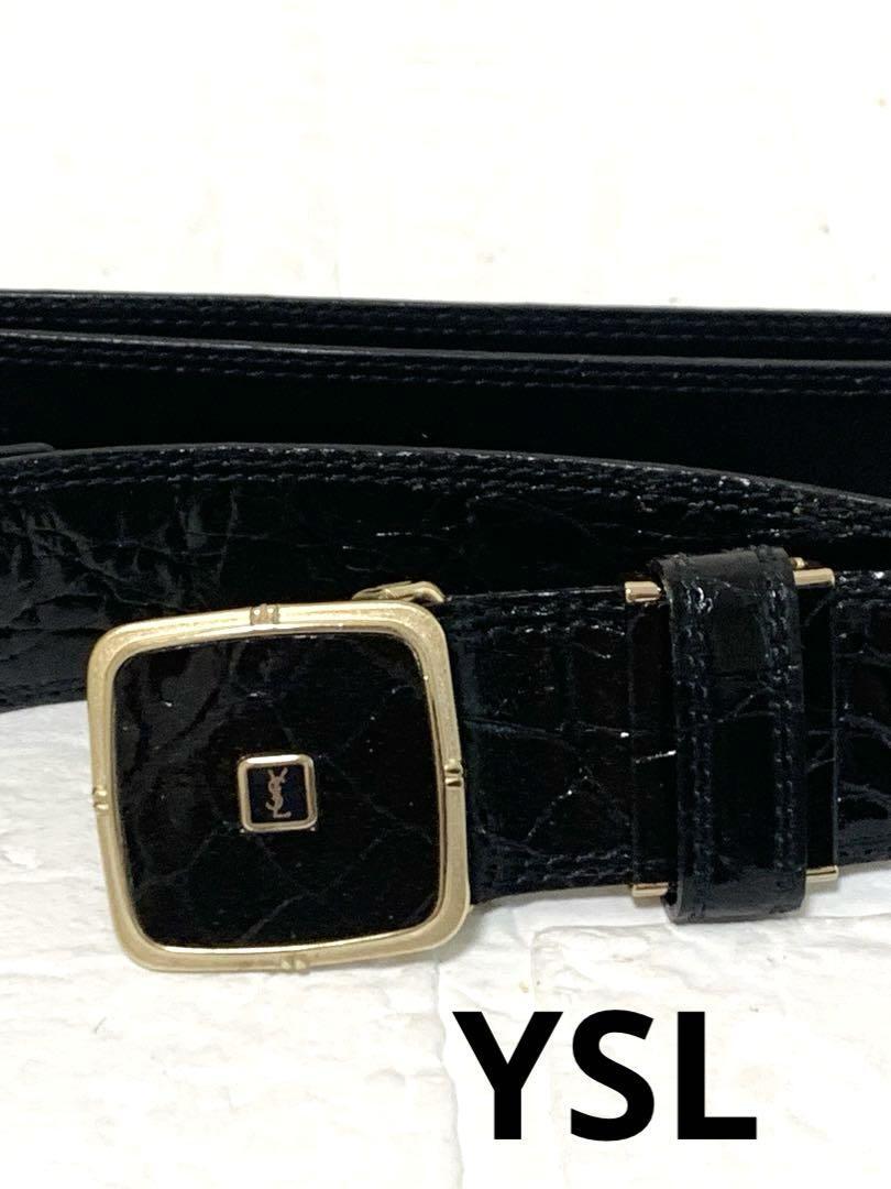 美品 Yves Saint Laurent イヴサンローラン ベルト 型押し 黒