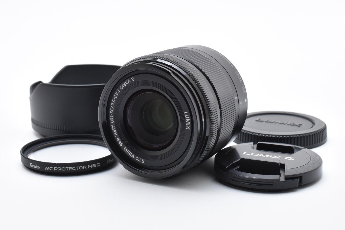 Panasonic LUMIX G VARIO 35-100mm f/4.0-5.6 ASPH MEGA OIS H-FS35100 ブラック [美品] レンズフード フィルター 前後キャップ 手ぶれ補正