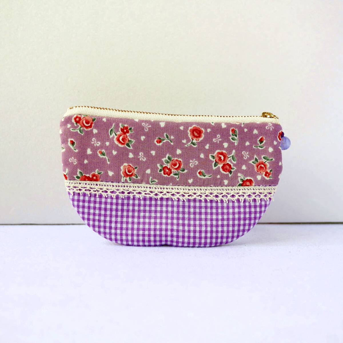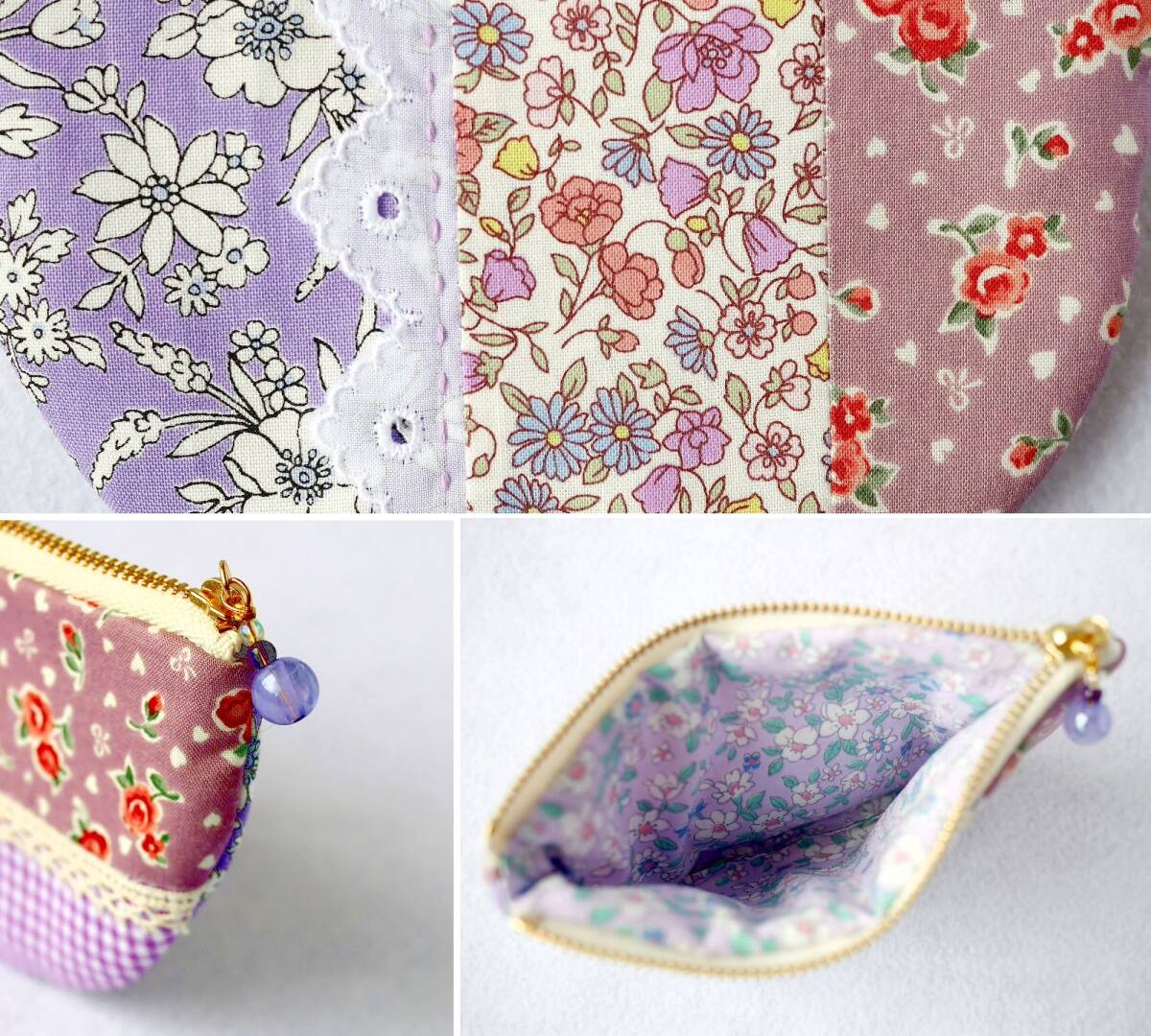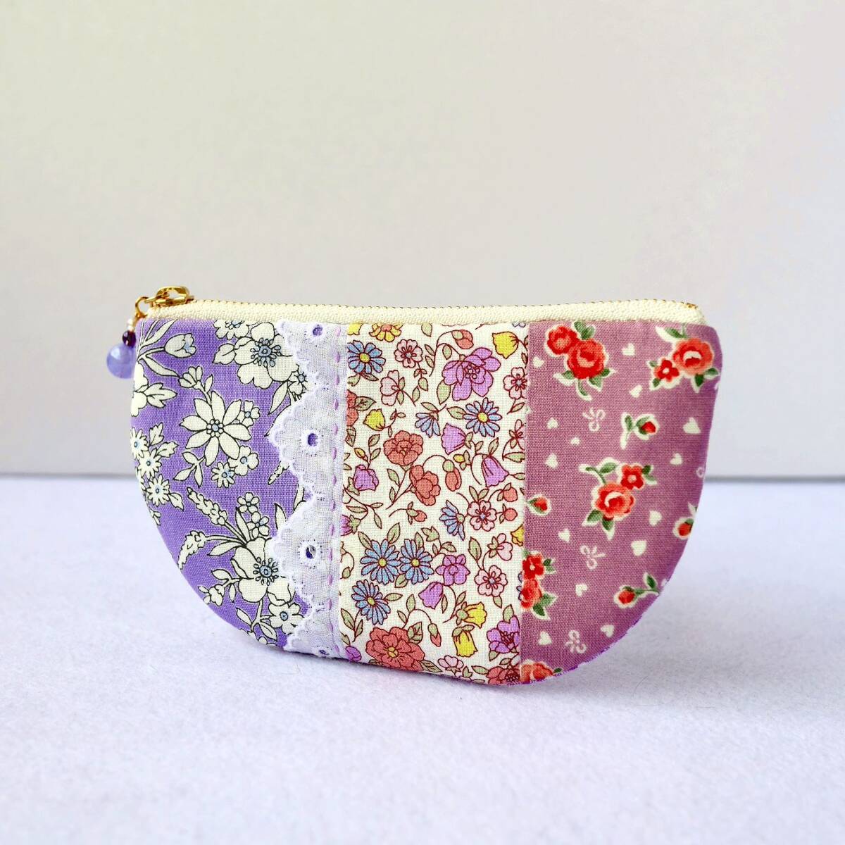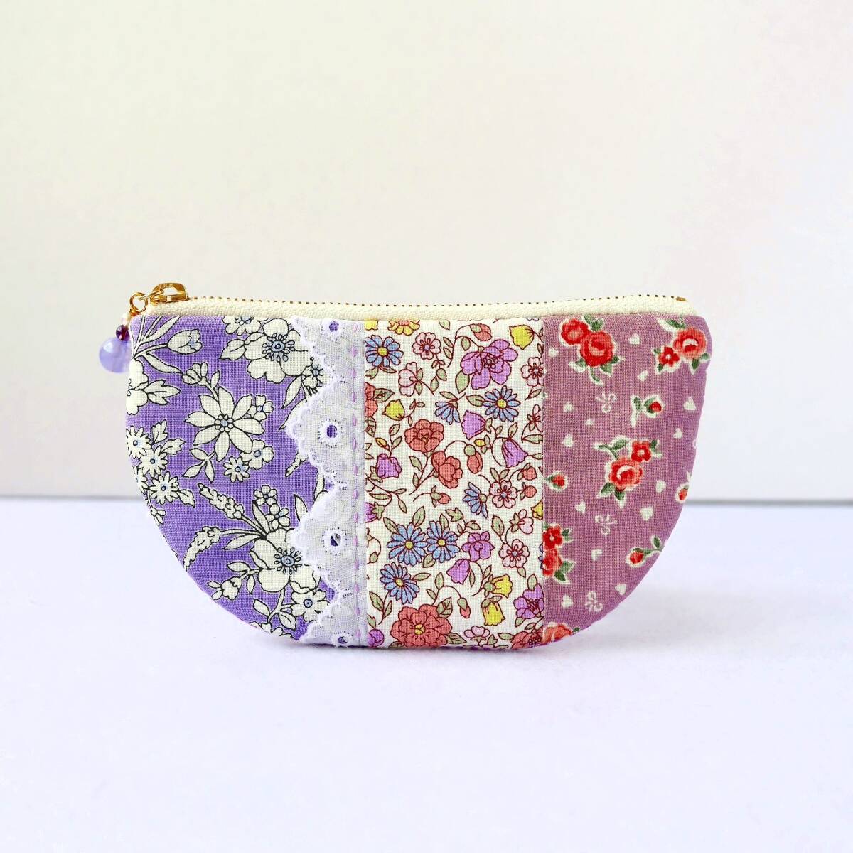 ♪ハンドメイド*パッチワーク ミニ半月ポーチ~やさしい紫花柄~♪