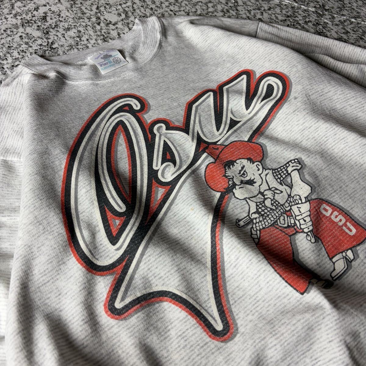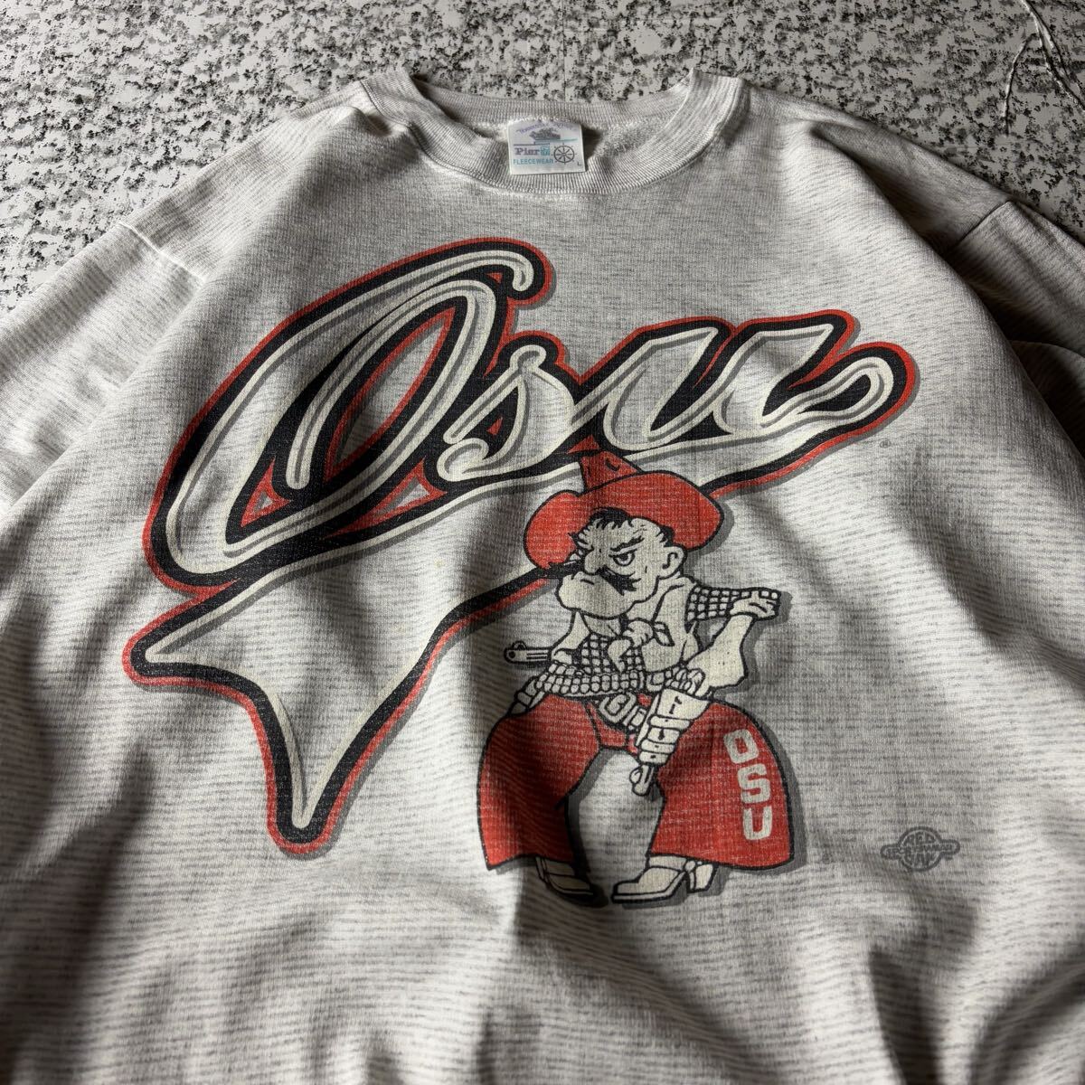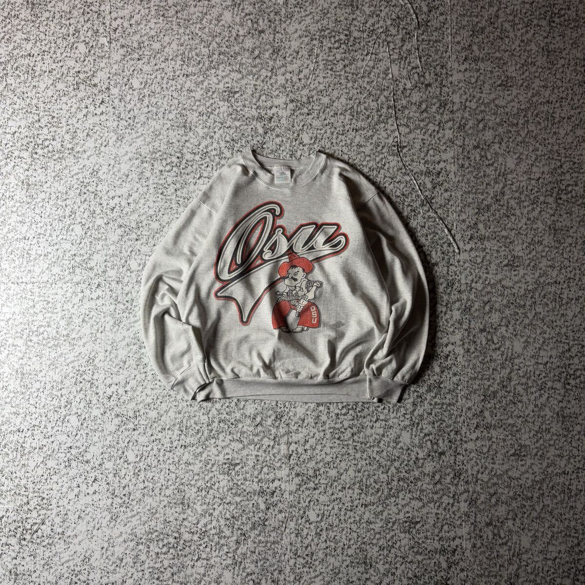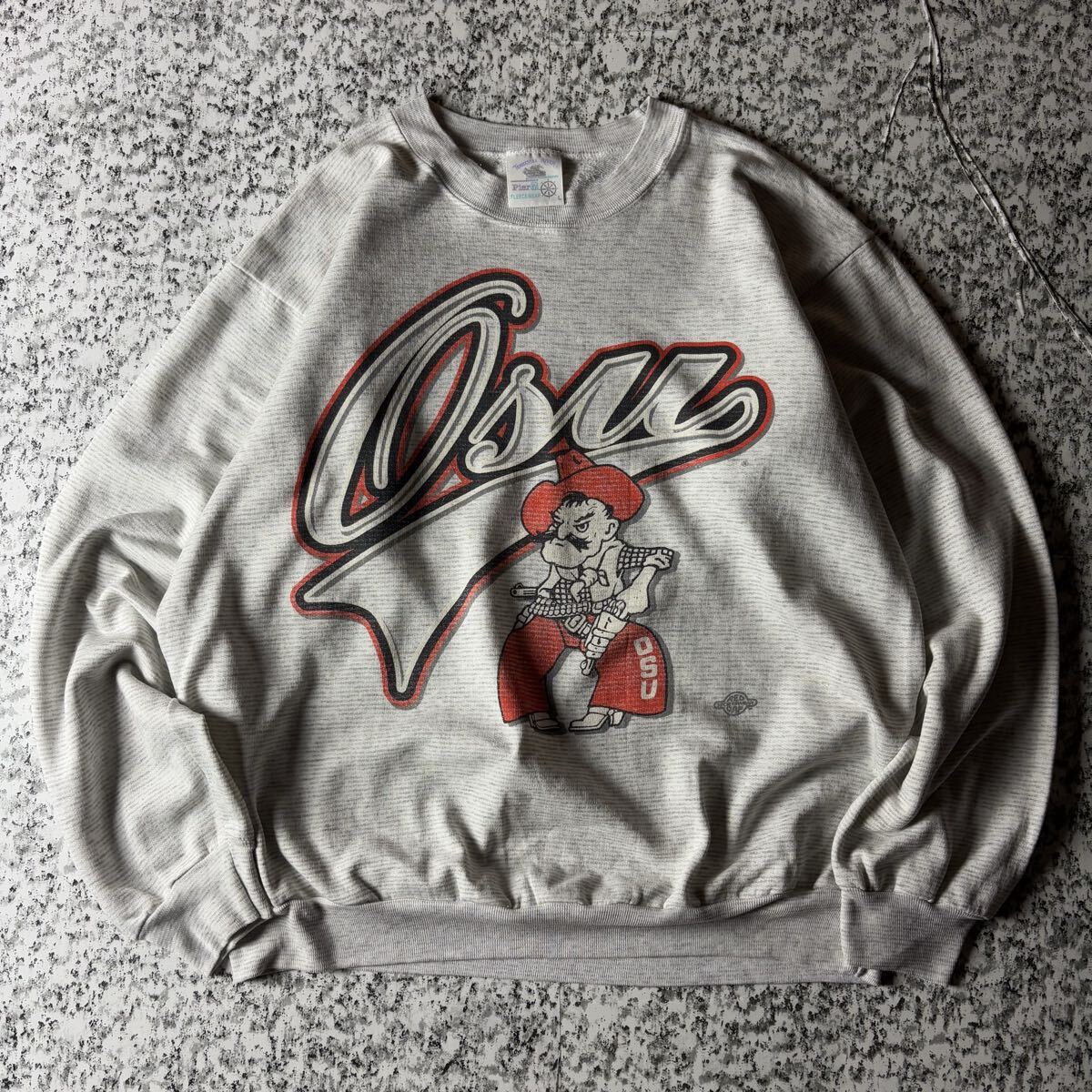 【90s USA製】シャドーストライプ ガンマン ヴィンテージスウェット 薄手 Lサイズ グレー  古着 トレーナー
