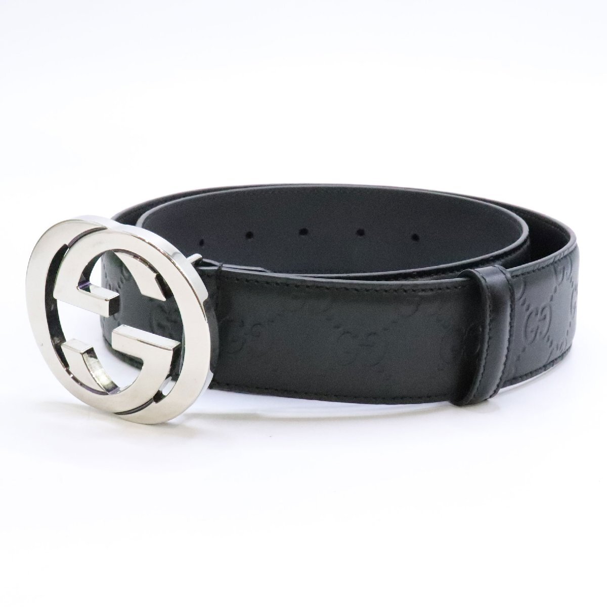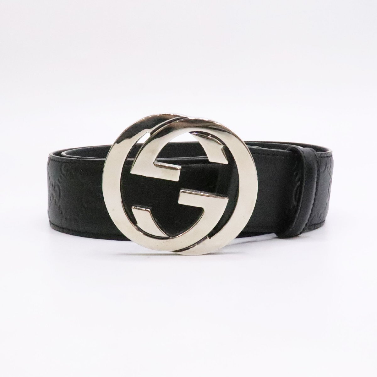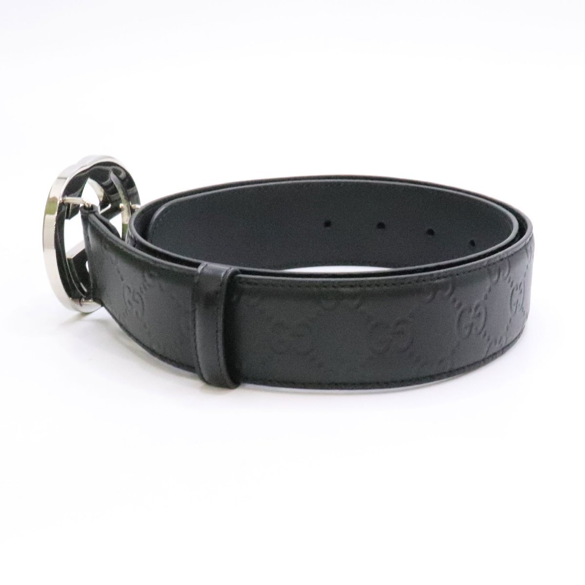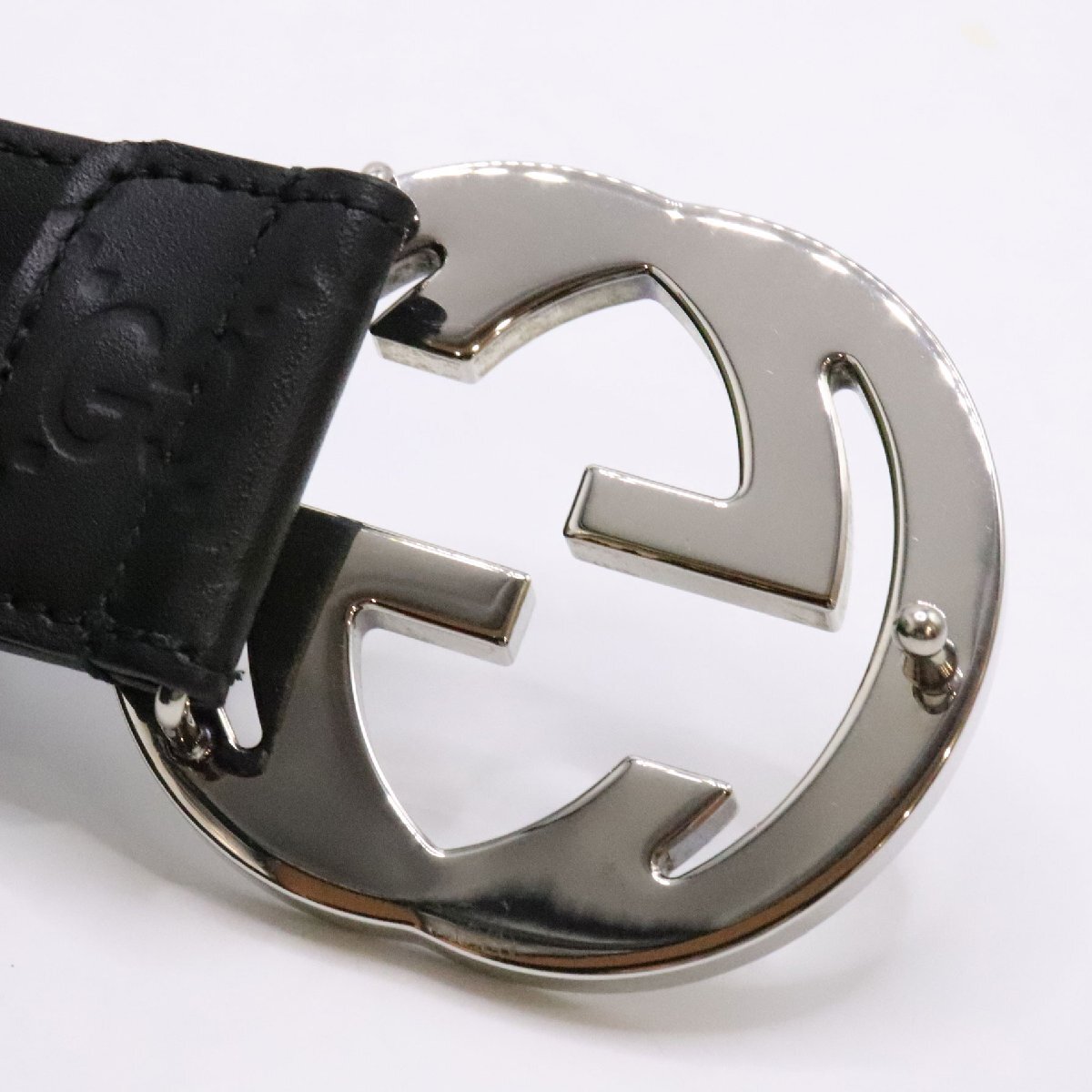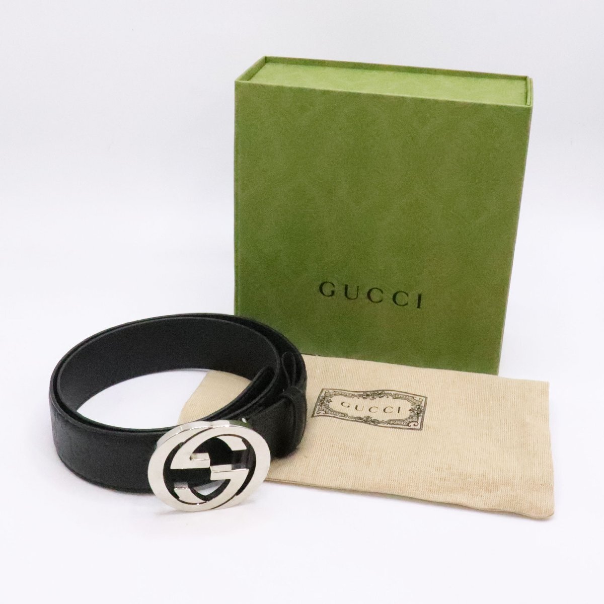 商品名 GUCCI グッチ インターロッキングG バックル付き レザー ベルト 411924 ブラック 黒 小物 メンズ belt leather black 中古 美品 送料無料!
