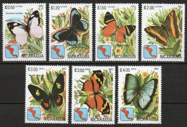 切手 K476 ニカラグア 昆虫 蝶 7V完 1982年発行 未使用