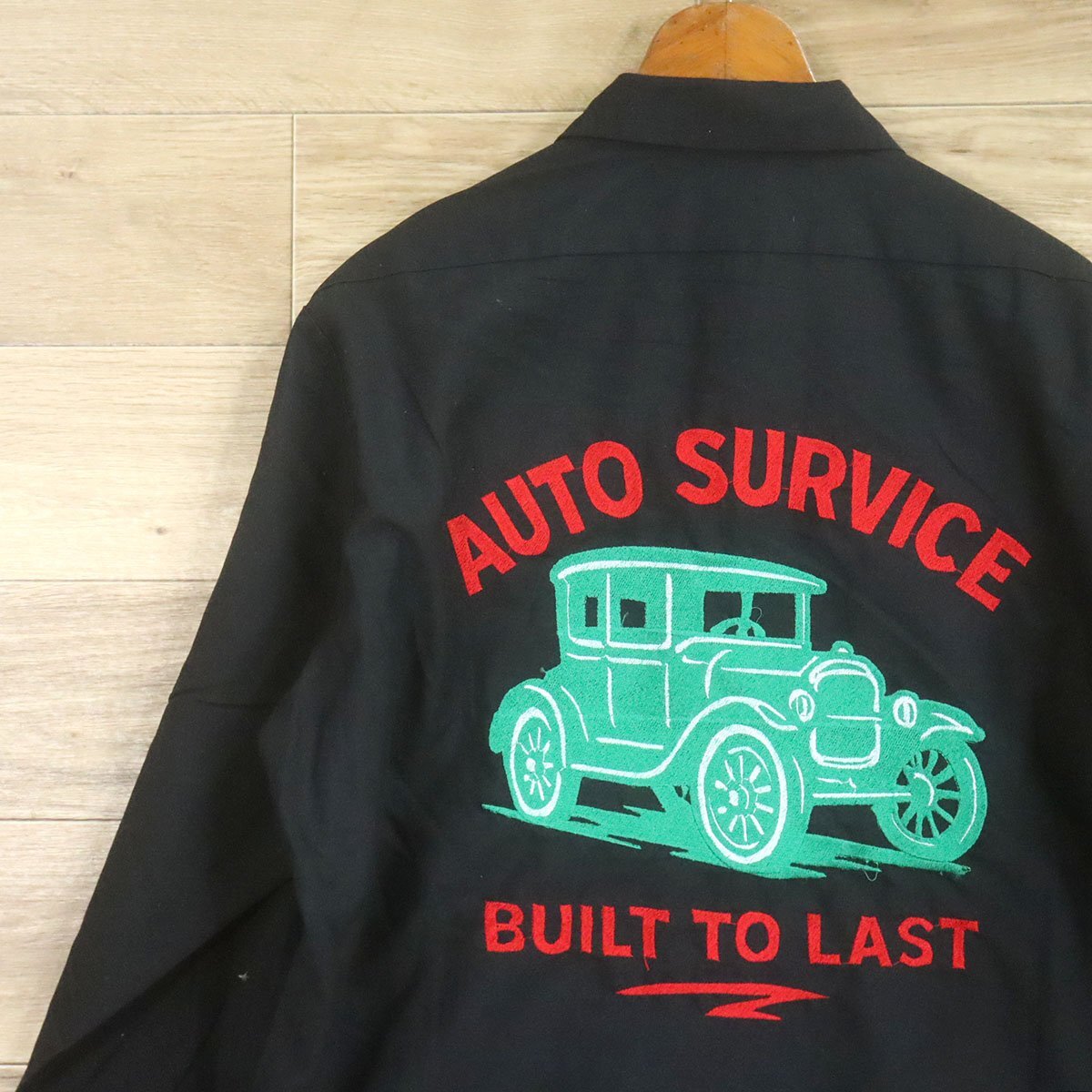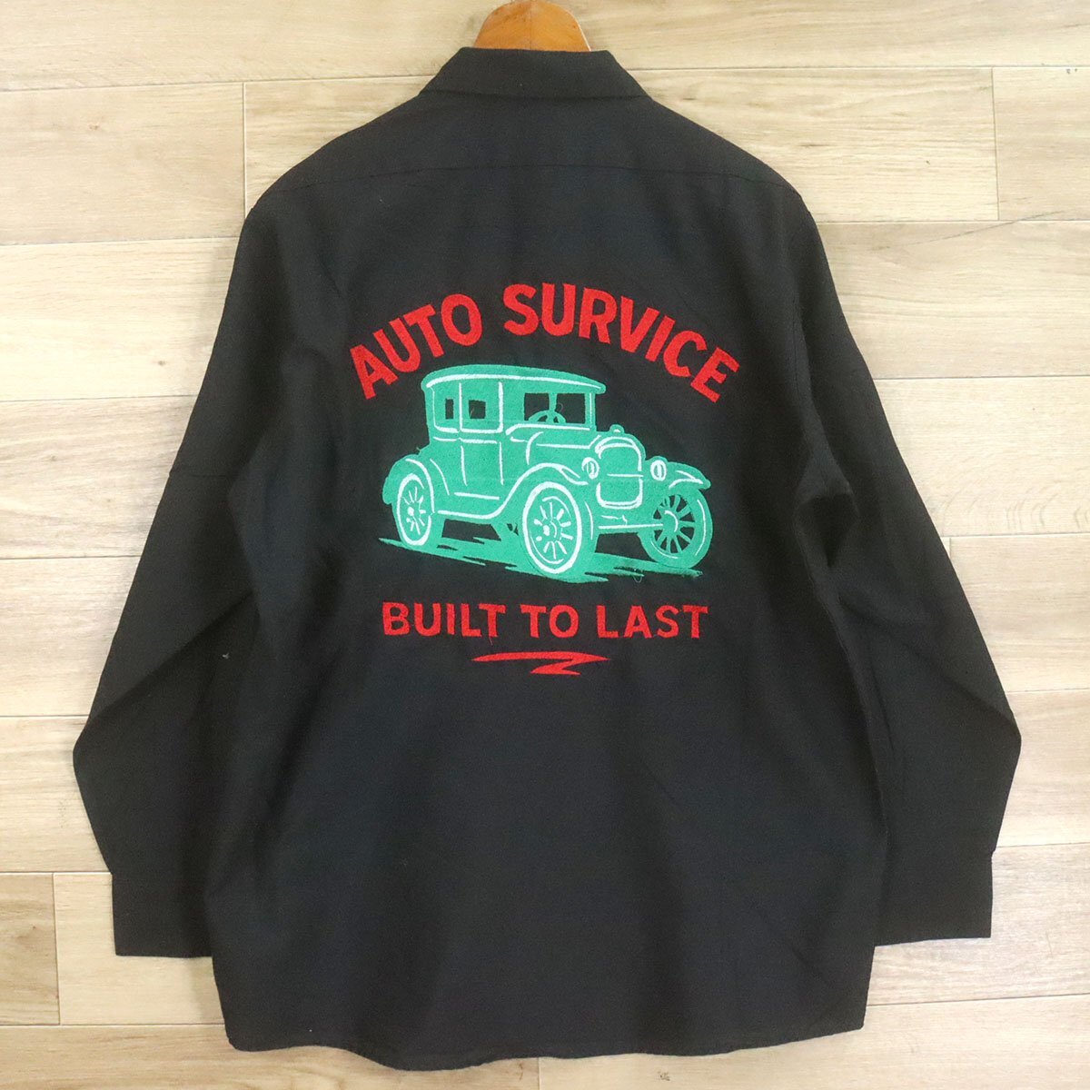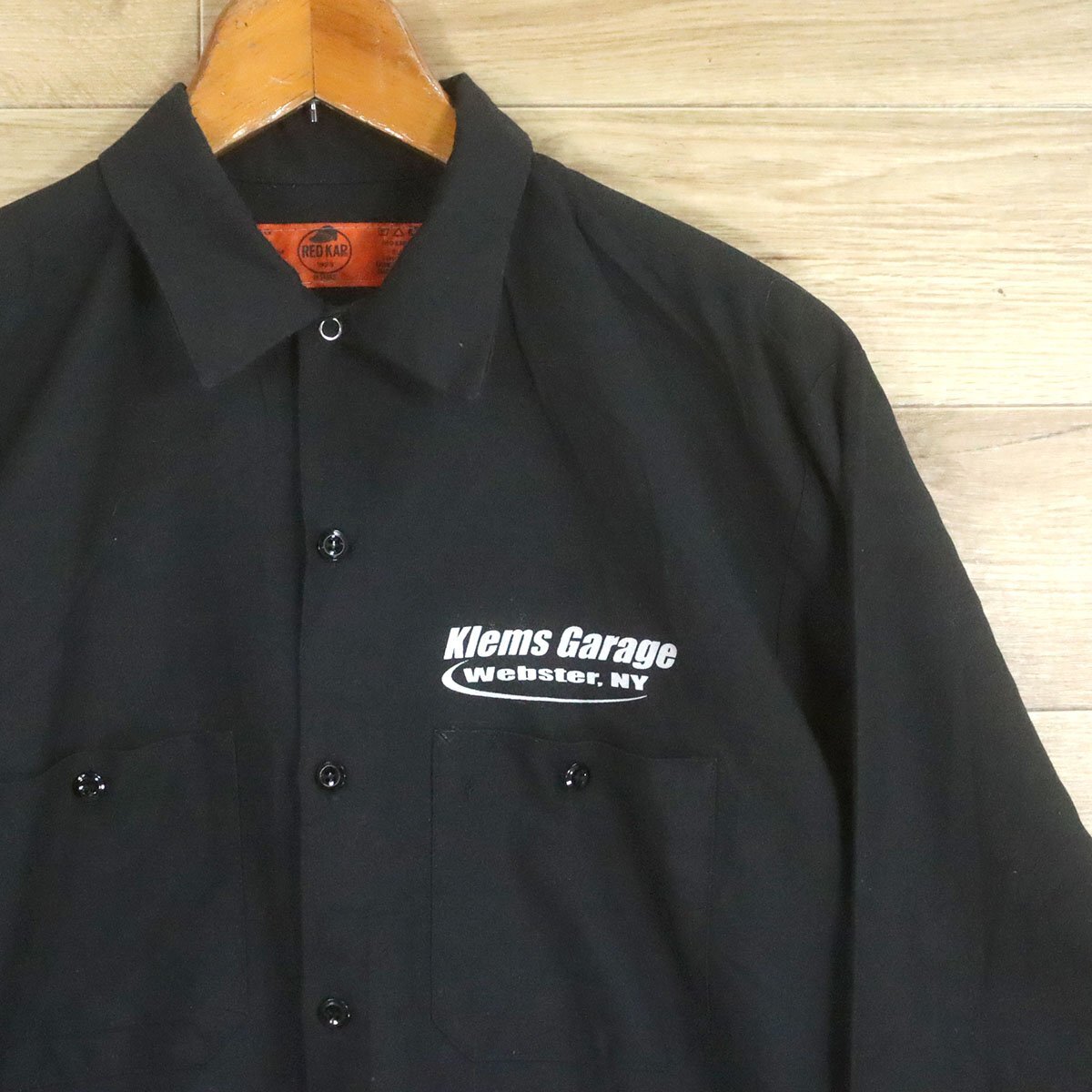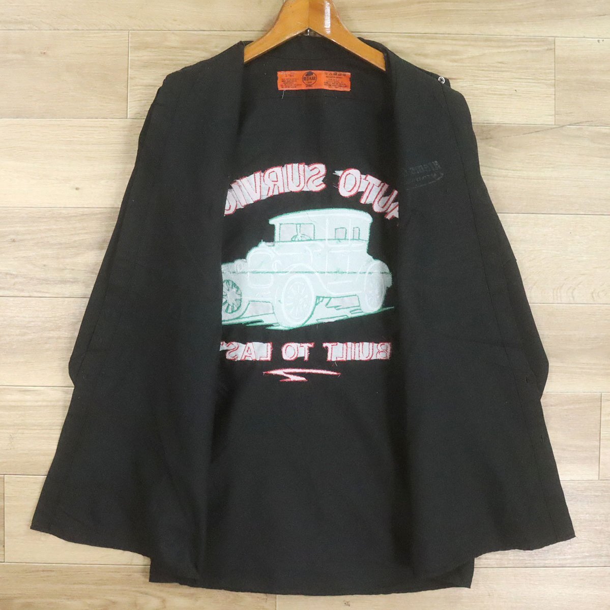 J8T/O9.15-5 アメリカ古着 RED KAP レッドキャップ ワークシャツ L メンズ 車 刺繍 ブラック メンズ