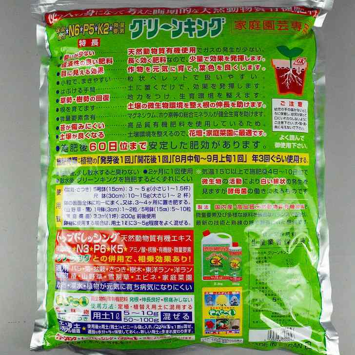 | 商品名 | グリーンキング (肥料の種類:天然動物質有機肥料) |