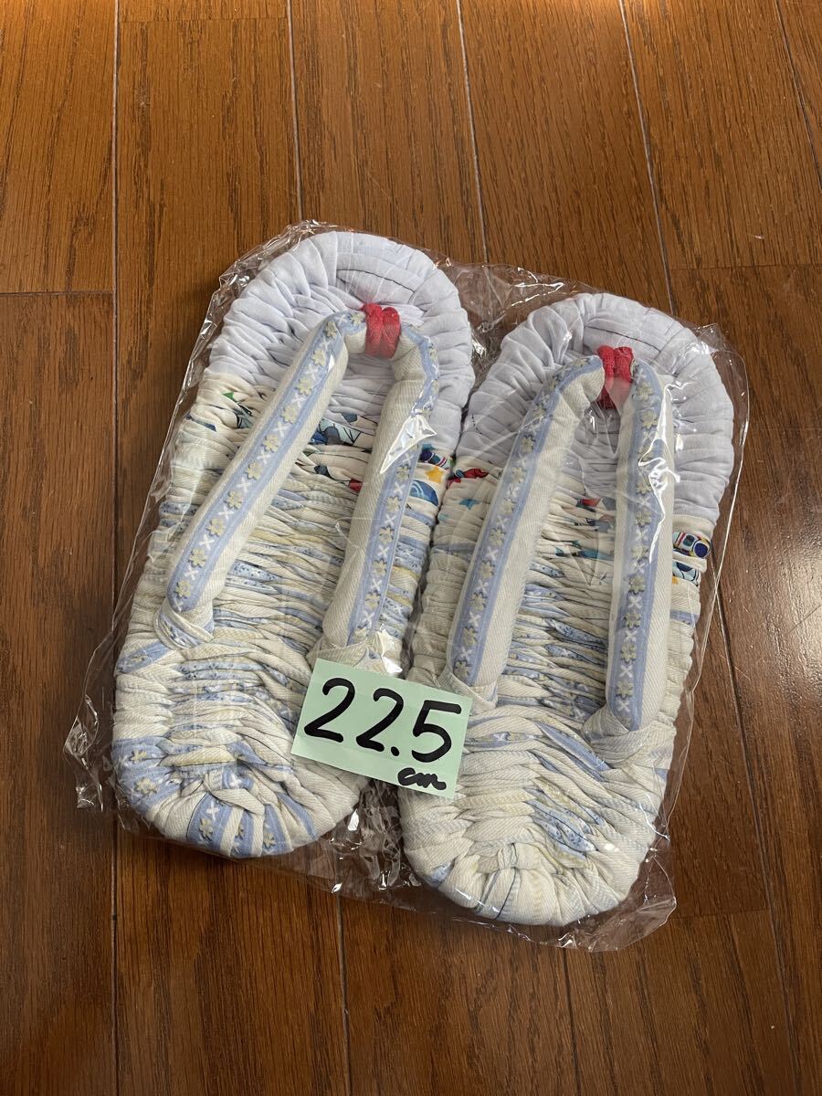 ぞうりの全長は22.5センチ程度ですので、足のサイズは21.5センチから23.5センチ程度の方向けですが、ぞうりですので大きめ小さめがあまり気にならないかと思います。