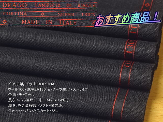 ●○最終!イタリア製 ドラゴ CORTINA SUPER130”s ストライプ チャコール 6.1mW巾○●