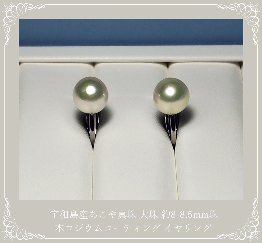 ◆宇和島産あこや真珠 あこや 本真珠 大珠 約8-8.5mm珠 本ロジウムコーティング イヤリング C30