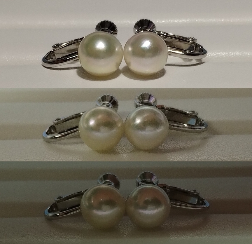 照りや巻きなど上質な珠には敵いませんが、イミテーションパールにはない上品で優しく柔らかい輝きがあります。