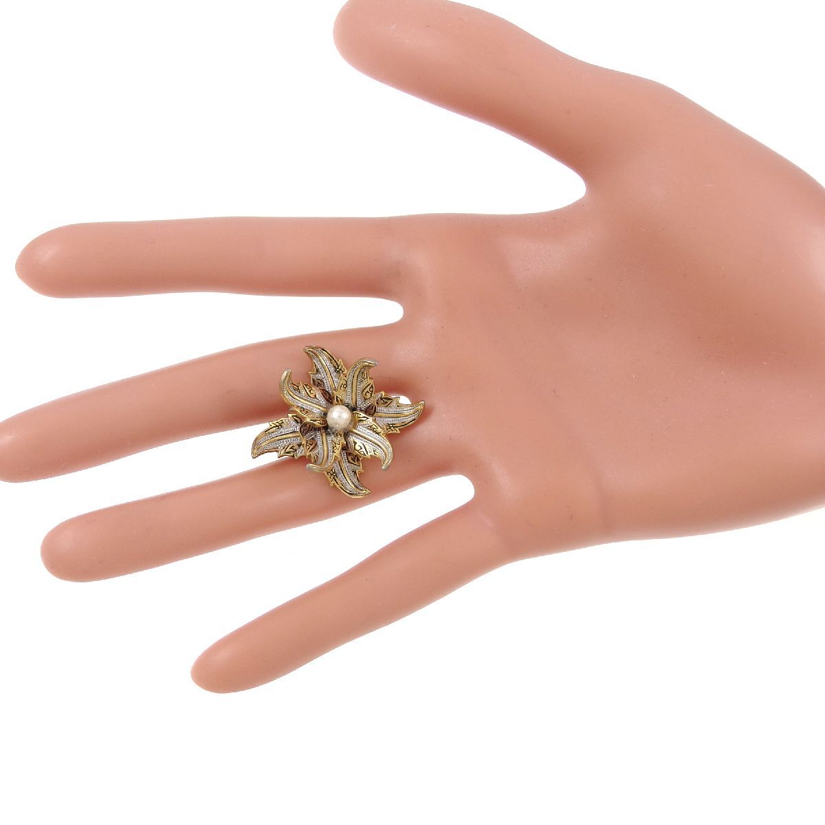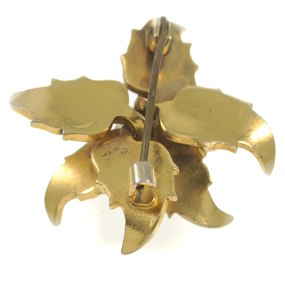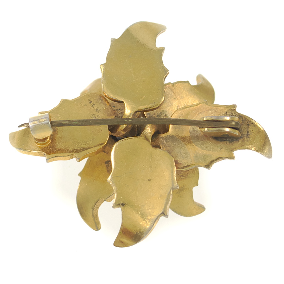 UK4086◆ フラワーモチーフ 象嵌 ダマスクスタイル 花 フェイクパール ヴィンテージブローチ ◆
