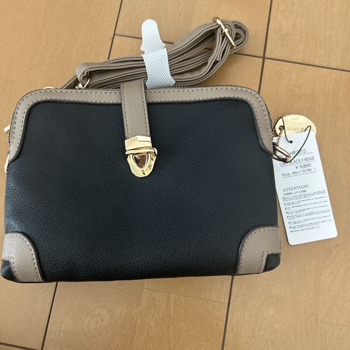 ブラックとベージュのコンビネーションで、スタイリッシュなデザインのショルダーバッグ。