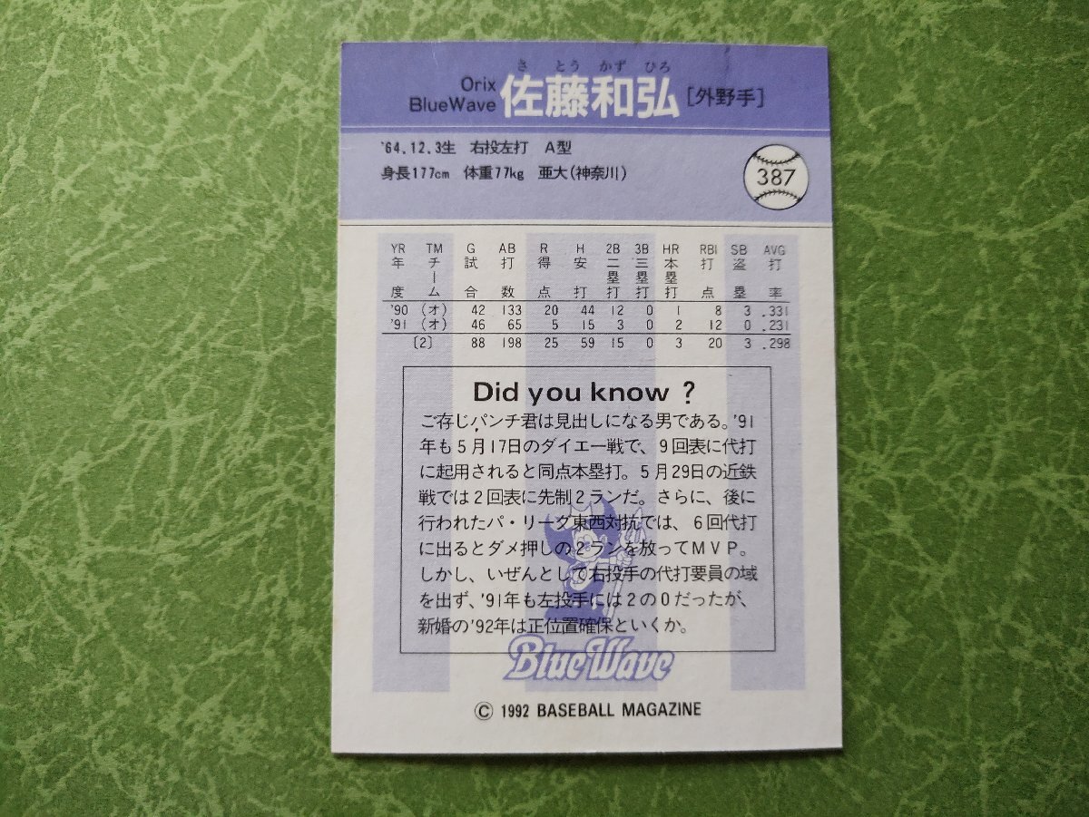 佐藤和弘 パンチ オリックス・ブルーウェーブ BBM'92