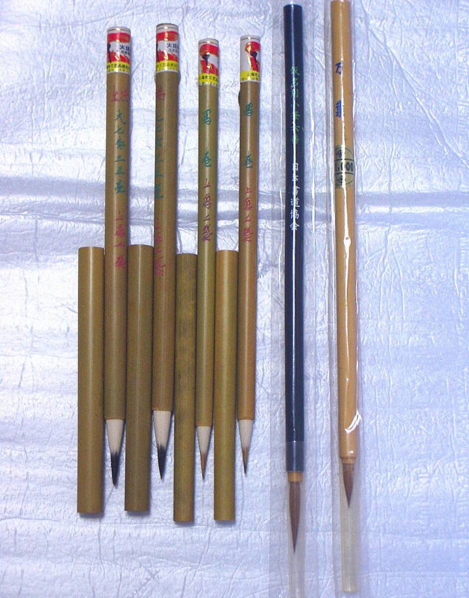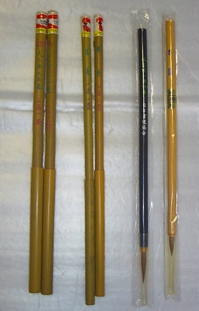 【未使用】習字用小筆 ①中国 上海工芸社 大七紫三羊毫、写巻 ②日本書道協会 仮名用小筆六番 ③国産小筆 万葉 計6本